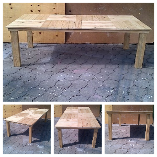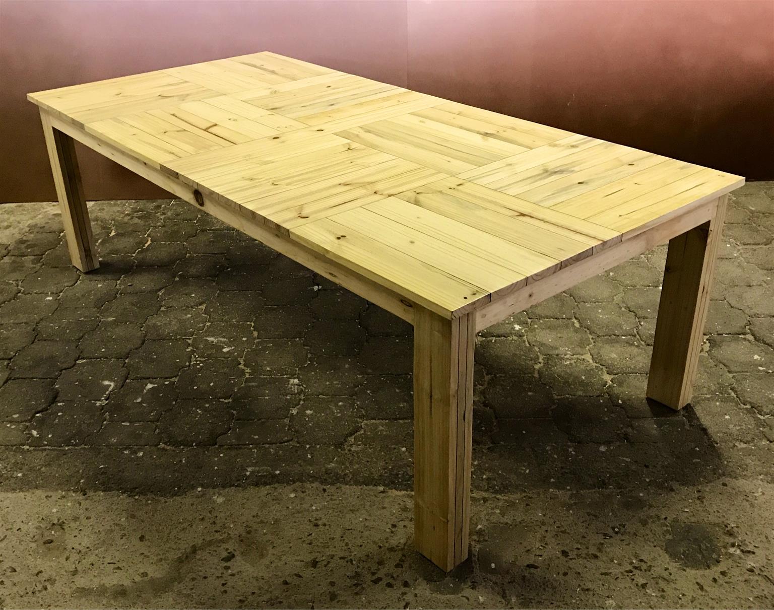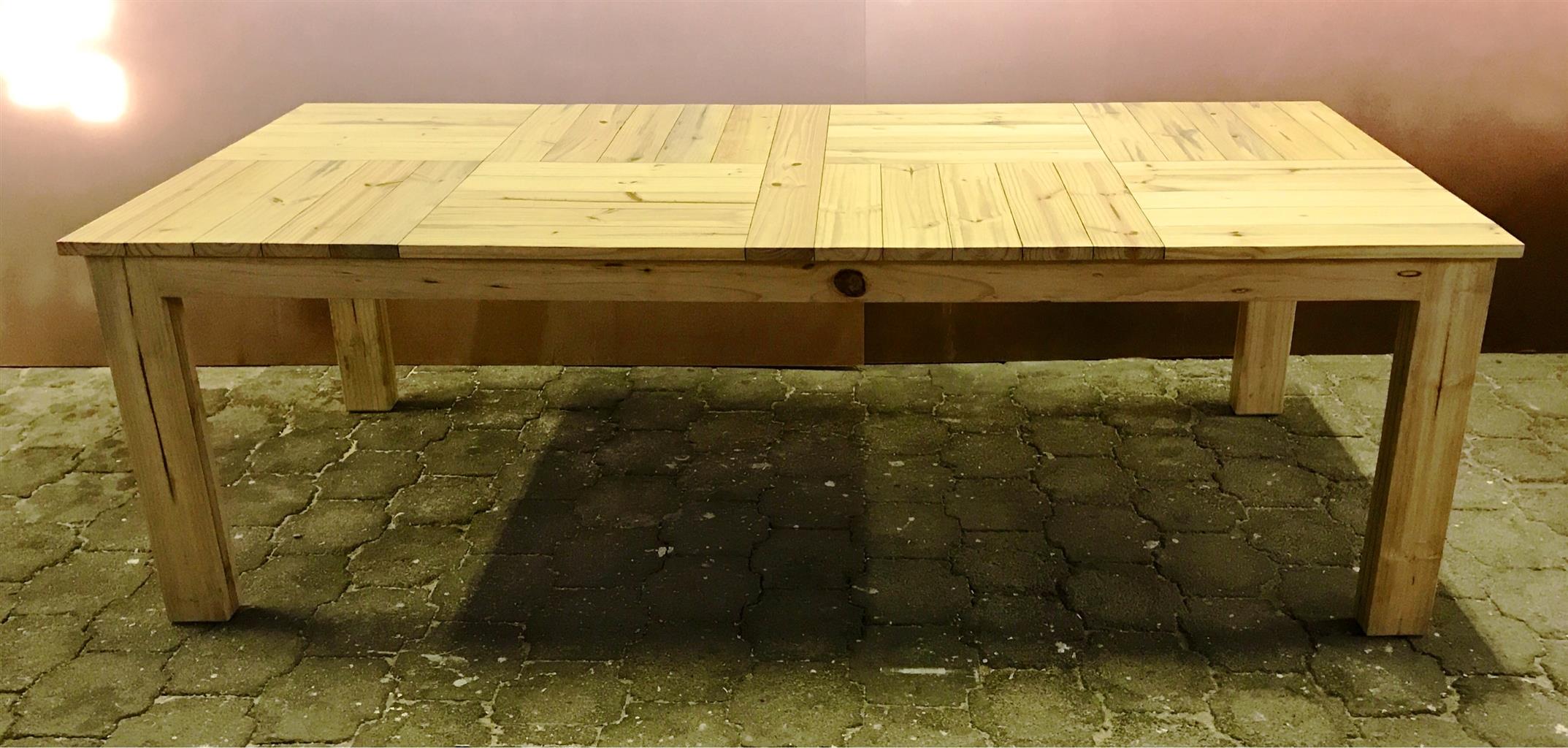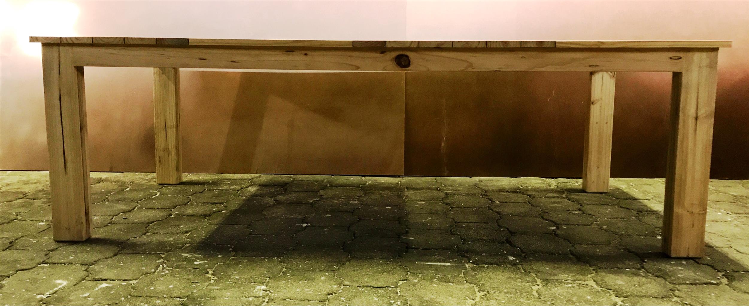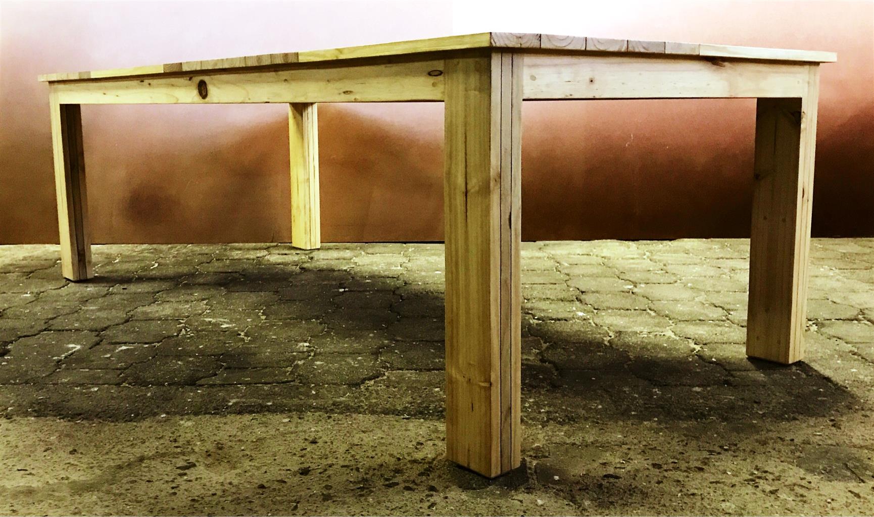 Beautiful hand-made clear varnished Patio table that can also be used as a dining table or a kitchen table in larger kitchens. Can seat 10 people. Benches and/or chairs are optional.