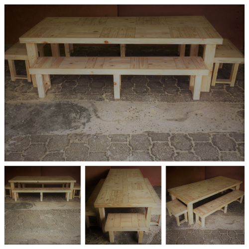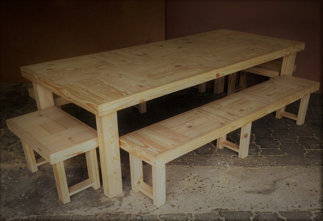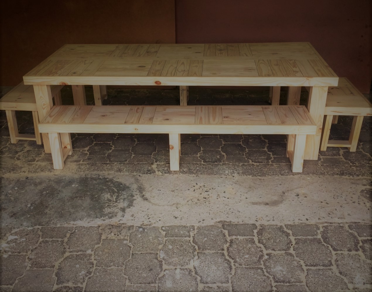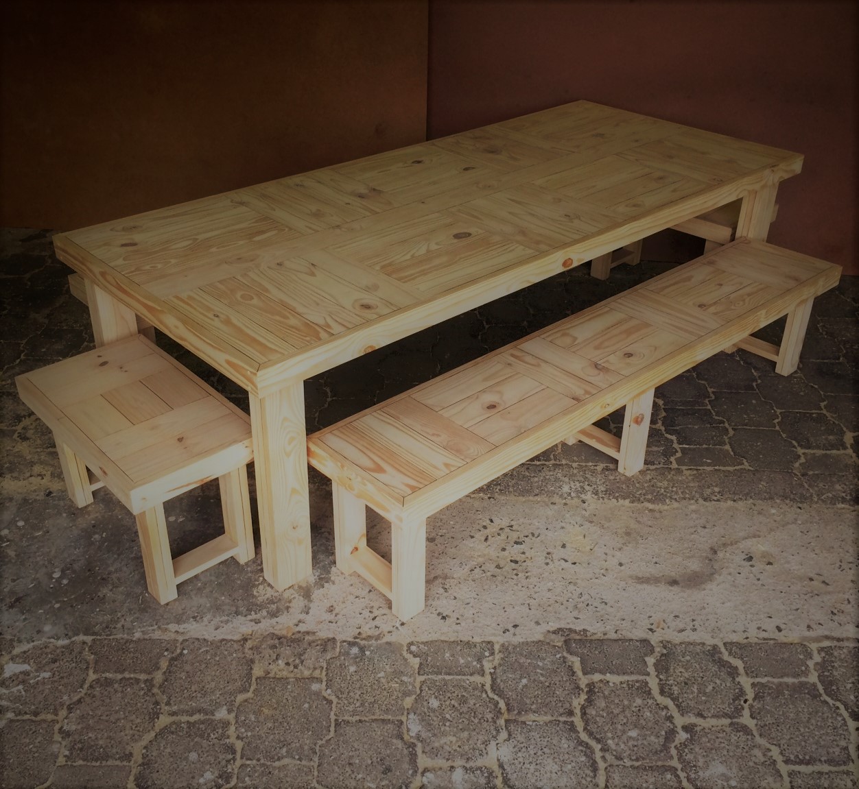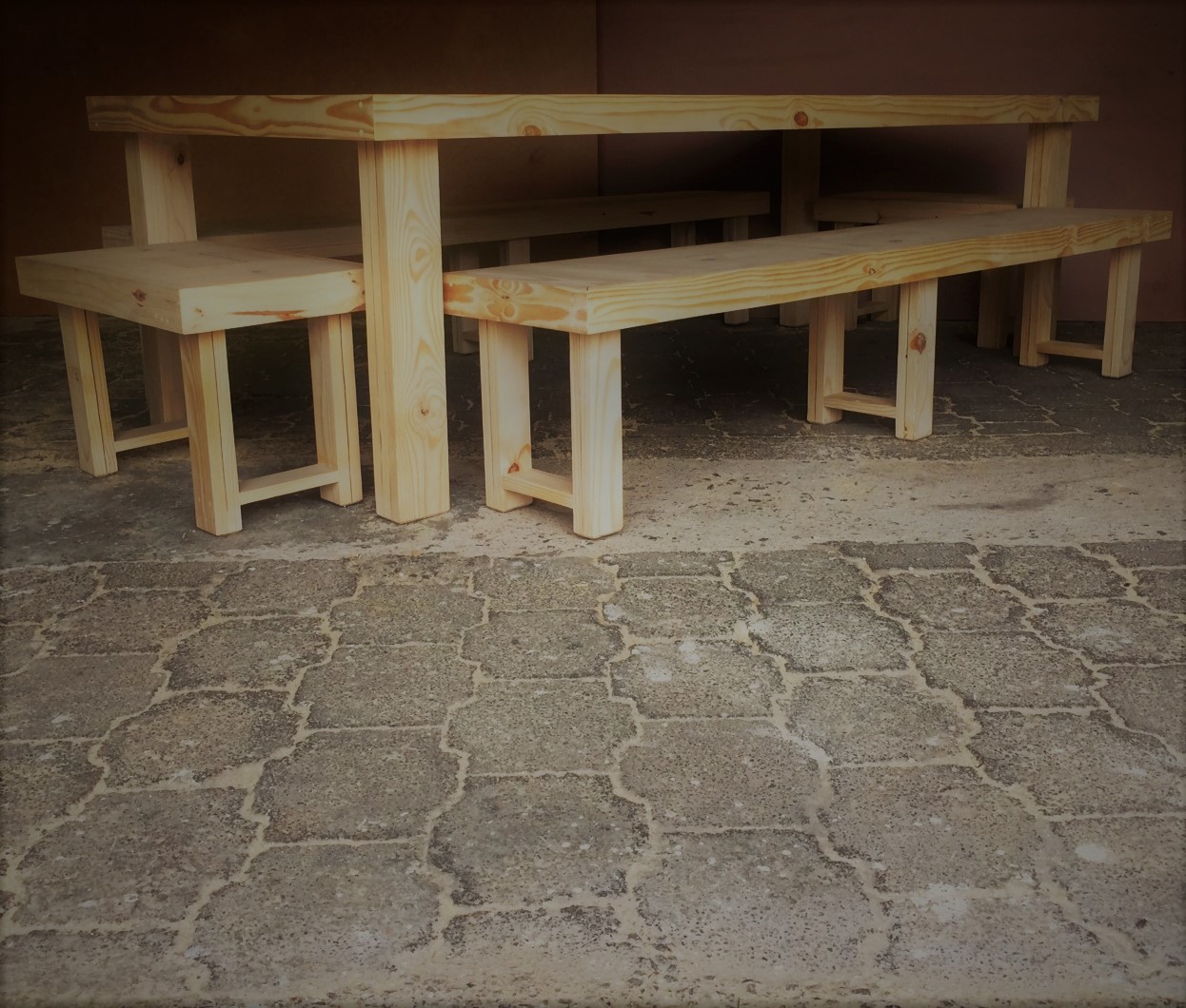 Beautiful hand-crafted rustic table and bench combo. Seats 10 to 12 people. Can also be used in the dining-room.