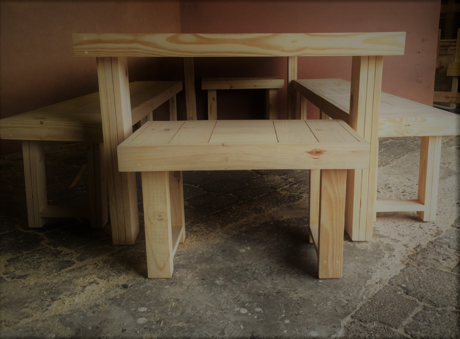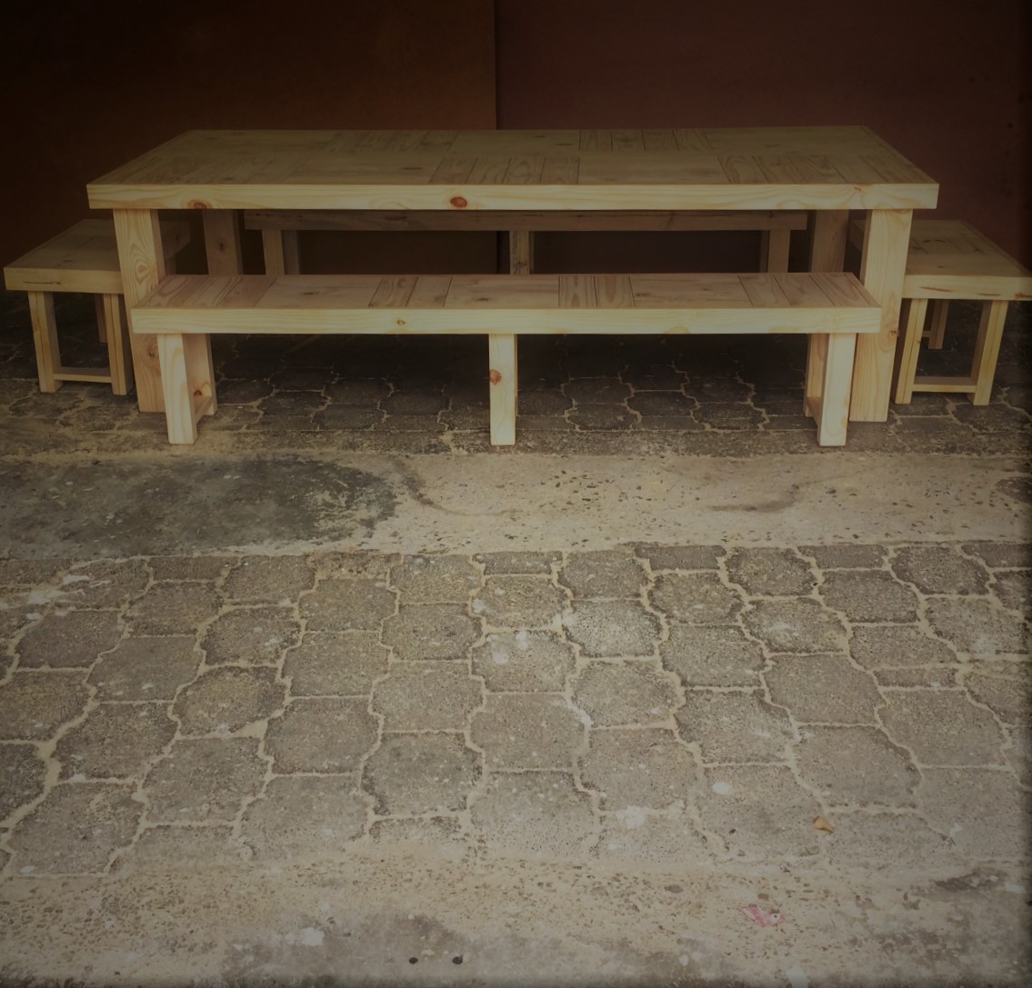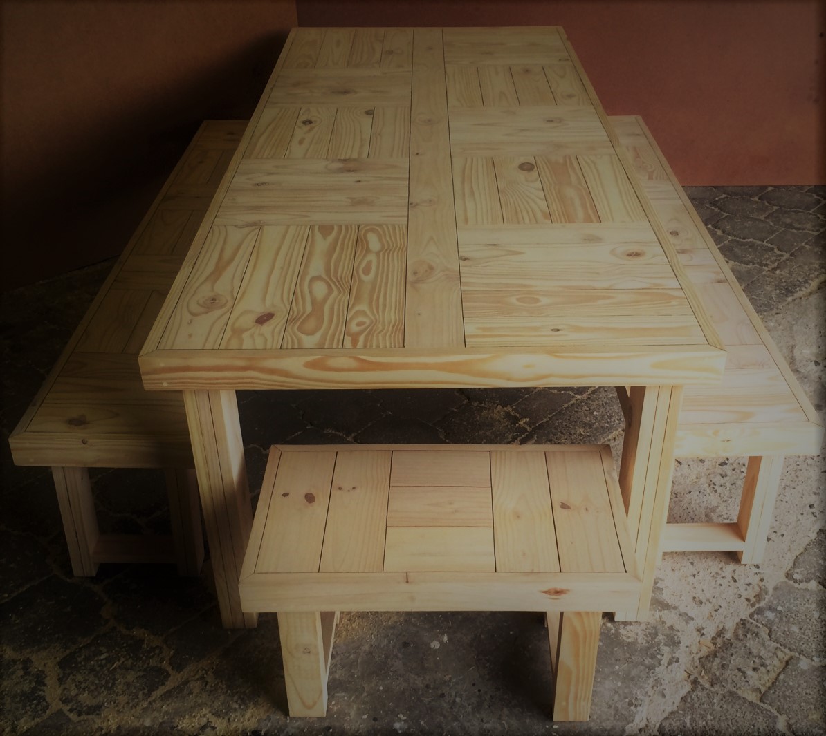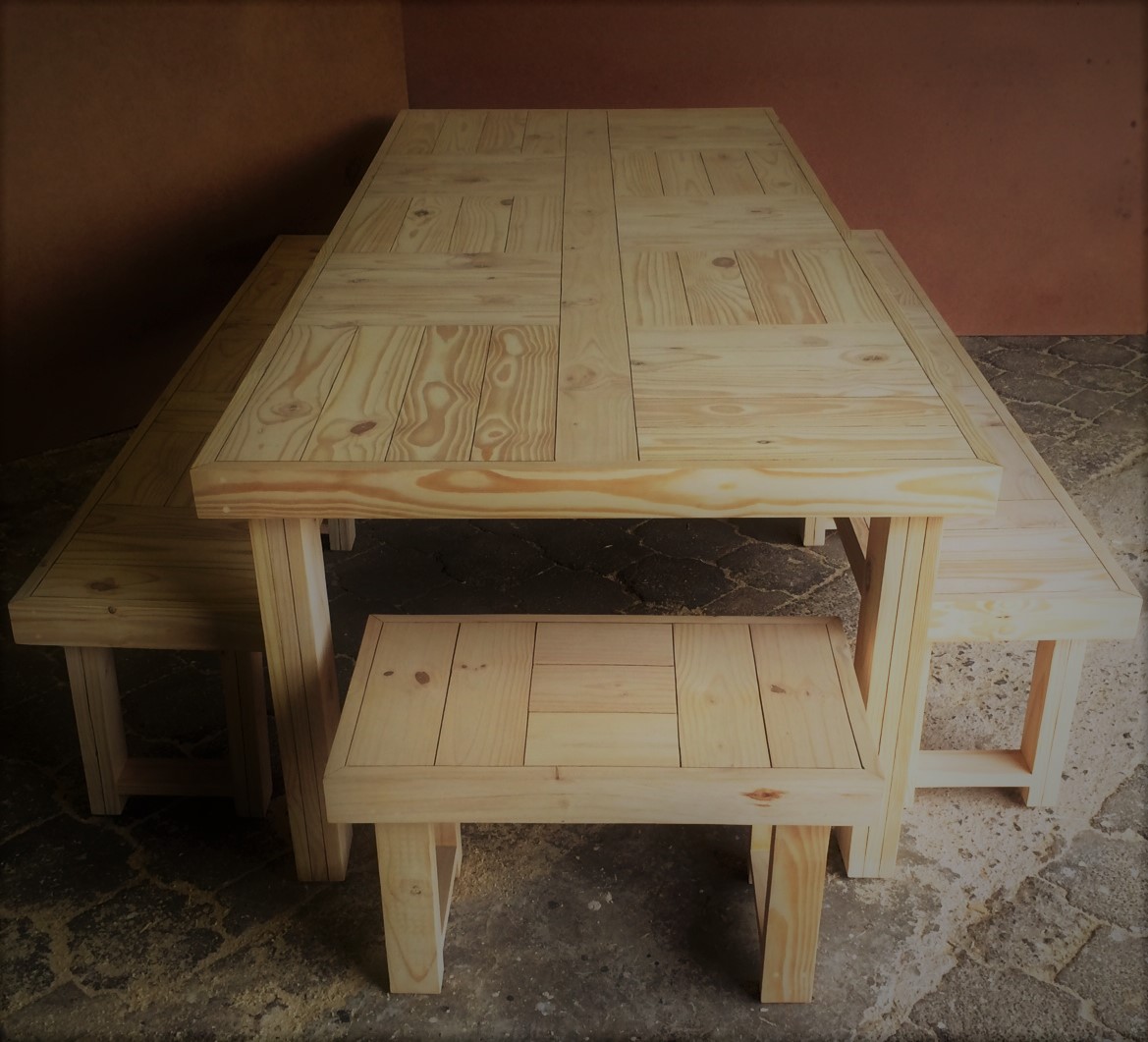 Beautiful hand-crafted rustic table and bench combo. Seats 10 to 12 people. Can also be used in the dining-room.