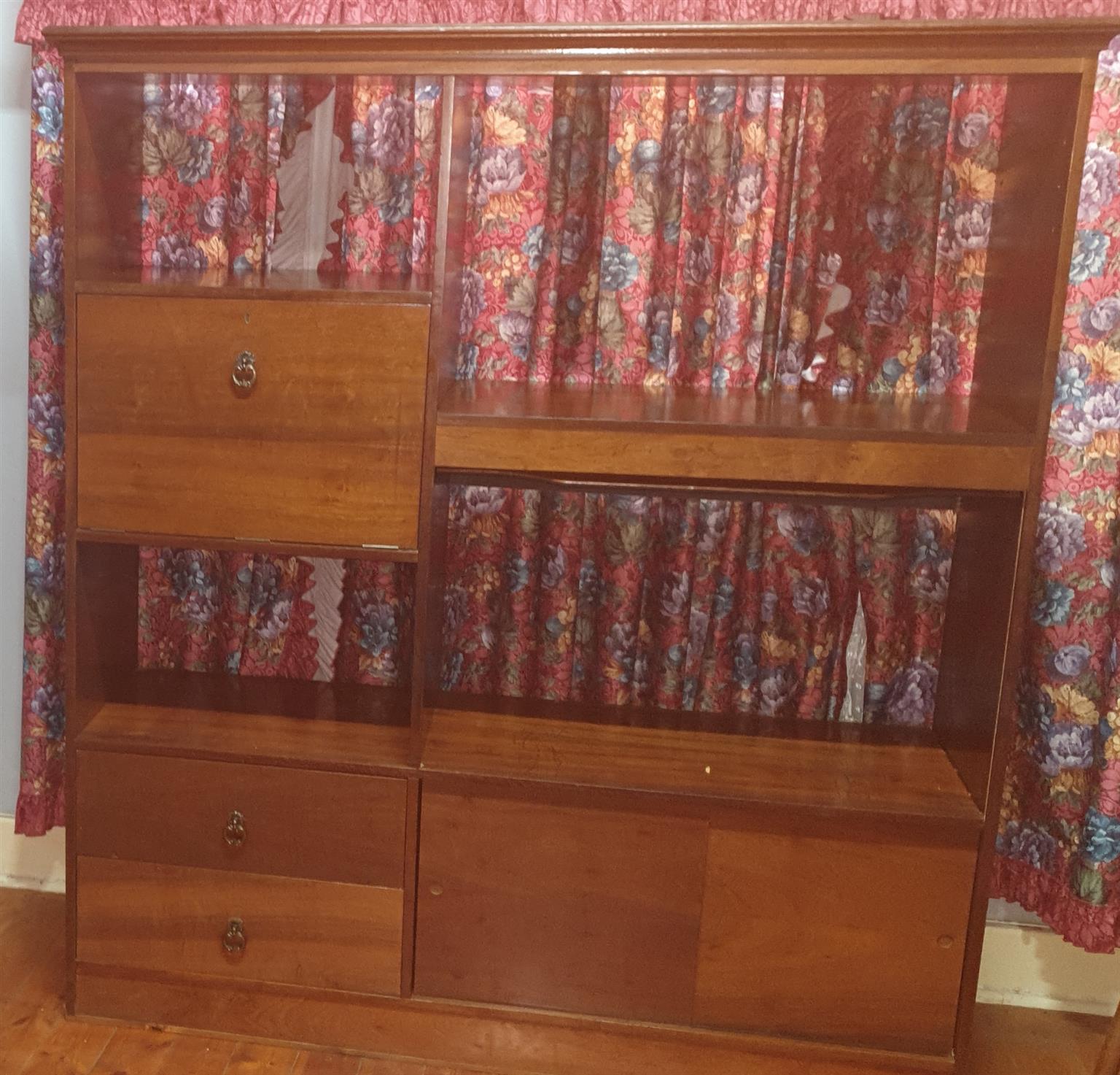Great for a small lounge. It has space for a TV, music system and lots of packing space.