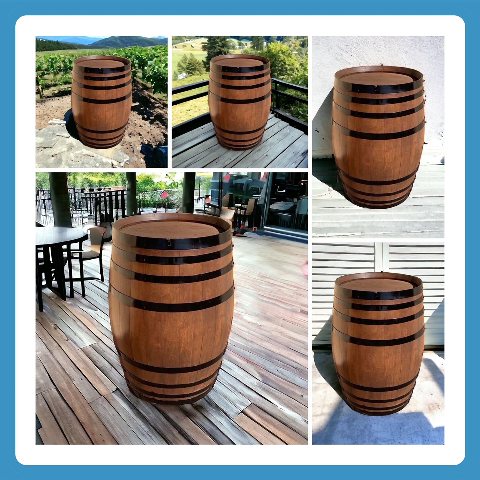 This beautiful wine barrel will be a lovely addition to your Bar room. Sure to "enhance" entertainment area. Very popular in Pubs and restaurants. Tops in different sizes and bar stools are optional.