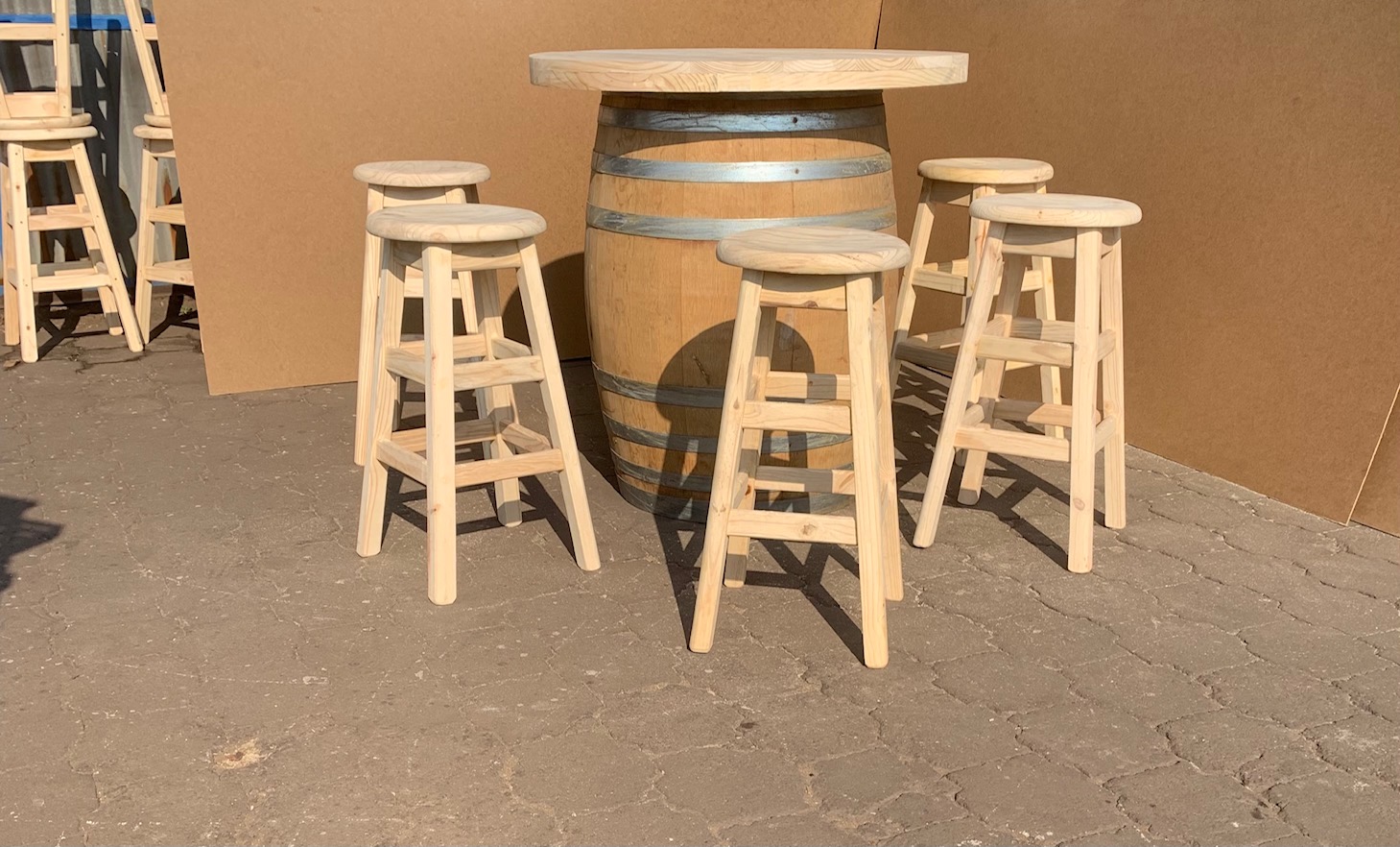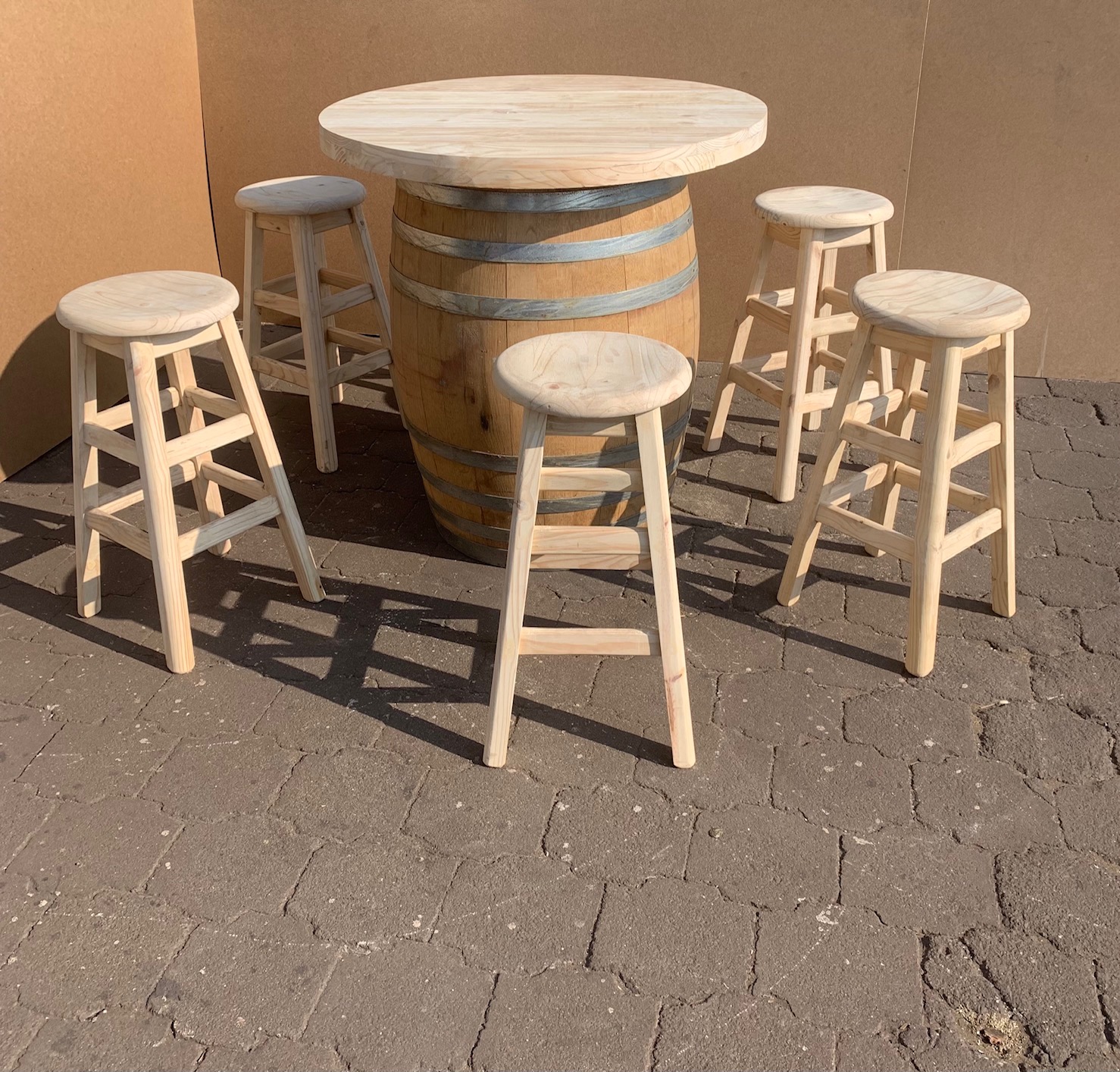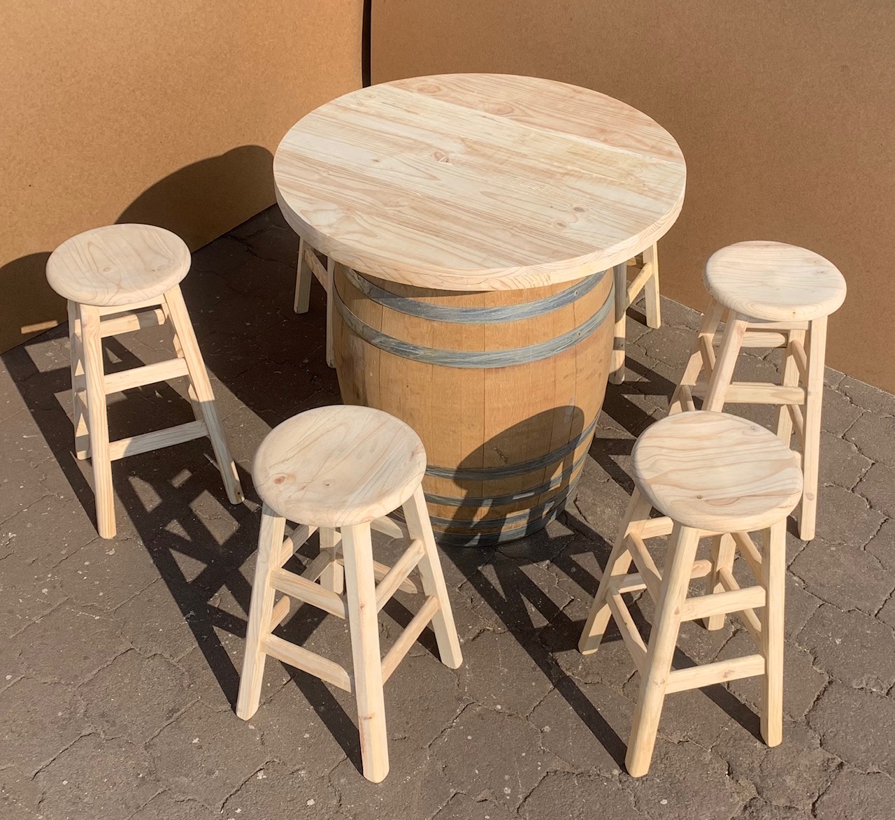 This beautiful unvarnished and untreated wine barrel with table top Combo will be a lovely addition to your Bar room/area. Sure to "enhance" entertainment area and top allows for comfortable work/serving area. Very popular in Pubs and restaurants. Price is for 1 Barrel with top and 6 stools.