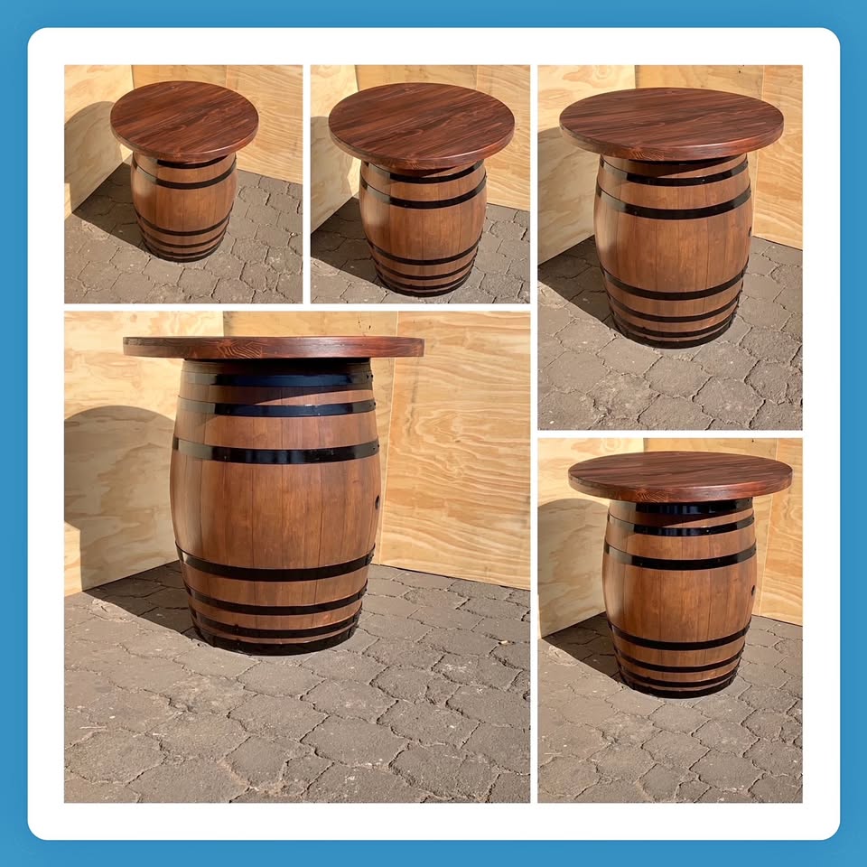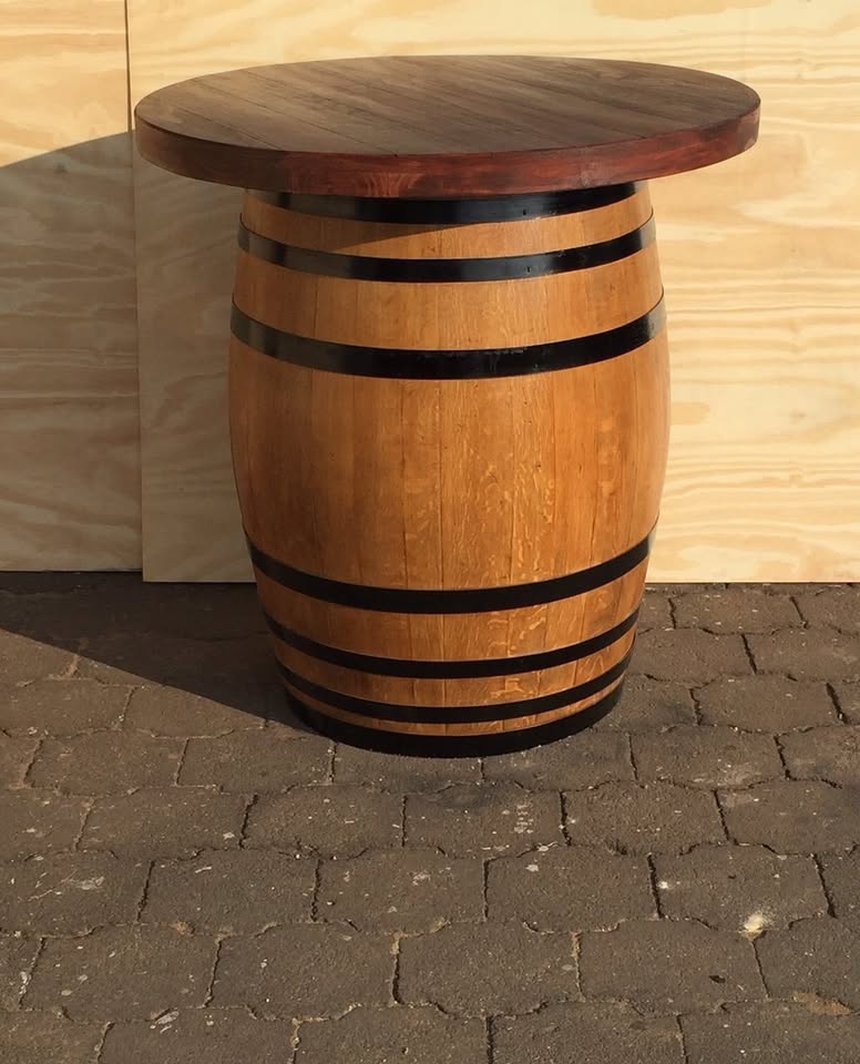 This magnificent stained wine barrel will be a lovely addition to your Bar room. Sure to "enhance" entertainment area. Top allows for comfortable work/serving area. Very popular in Pubs and restaurants. Price is for 1 Barrel with top. Dimensions of top: 1000mm across Be different, be unique! Available in different stains. Branding can also be done at additional cost. Call Johann for pricing.