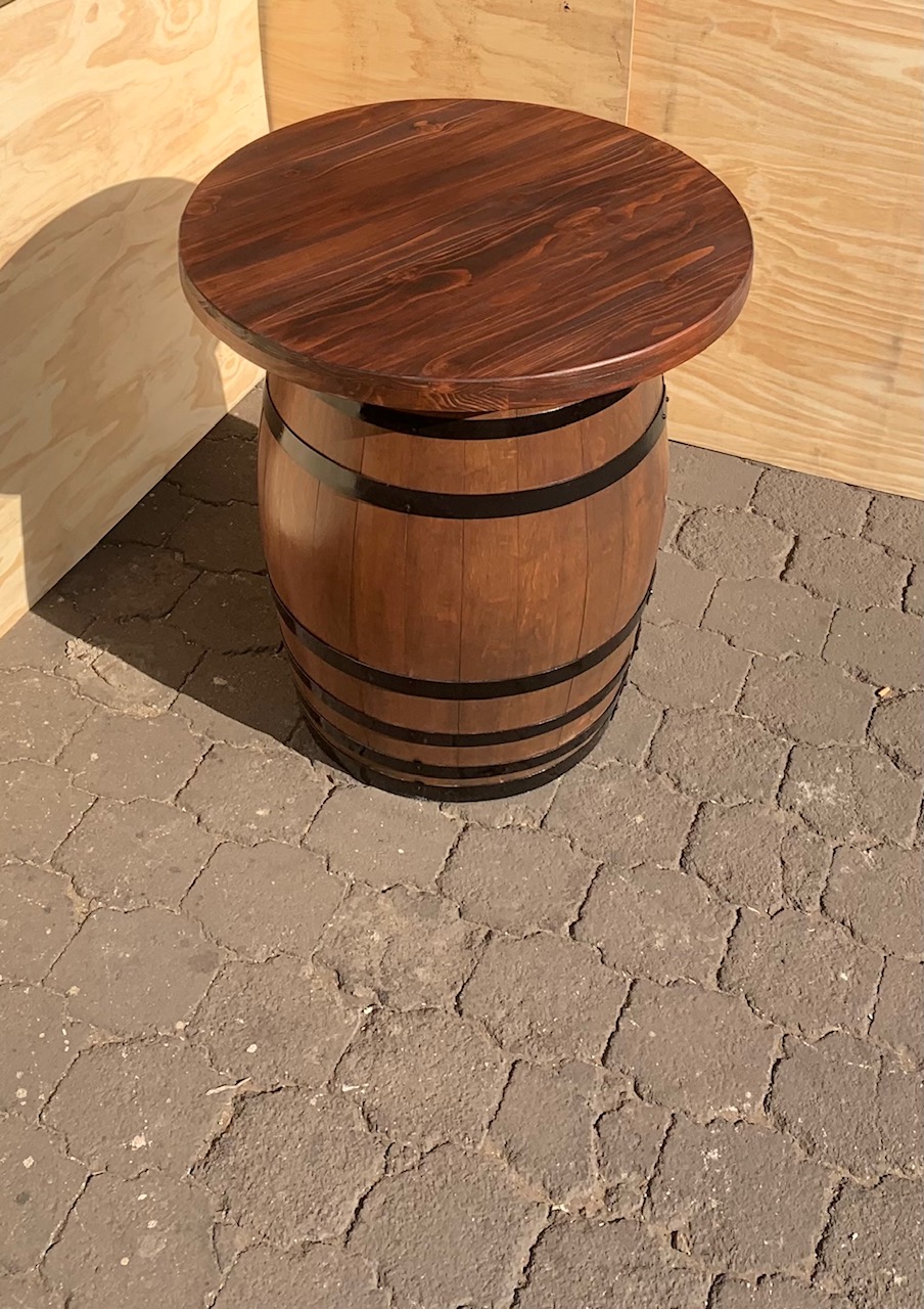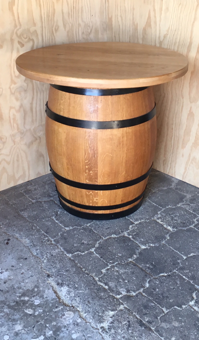This magnificent stained wine barrel will be a lovely addition to your Bar room. Sure to "enhance" entertainment area. Top allows for comfortable work/serving area. Very popular in Pubs and restaurants. Price is for 1 Barrel with top.