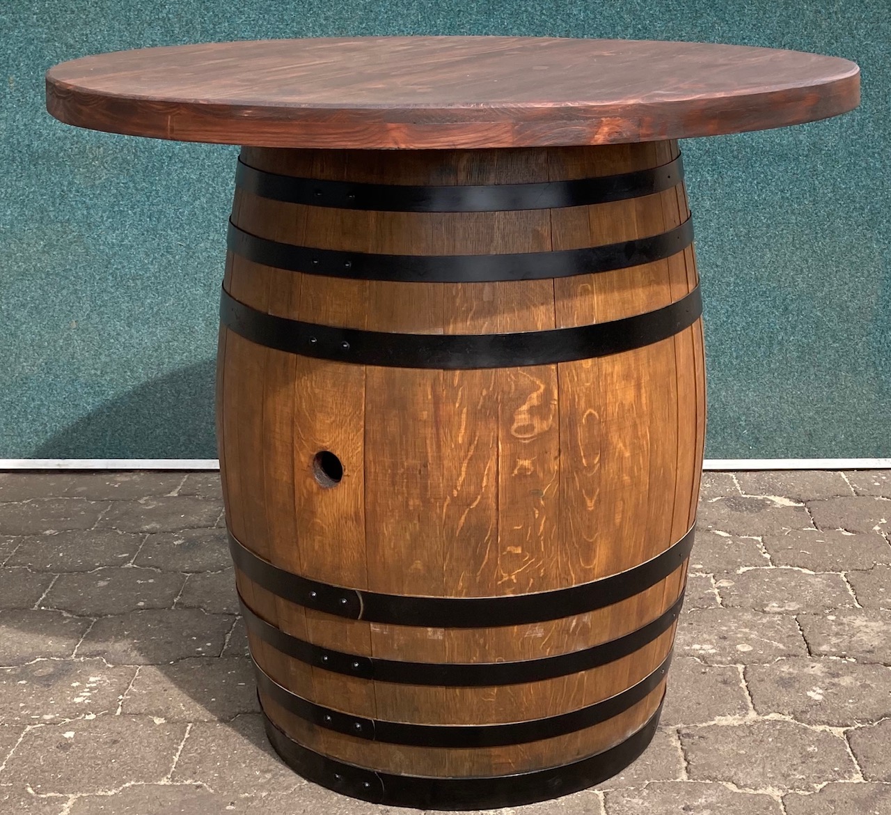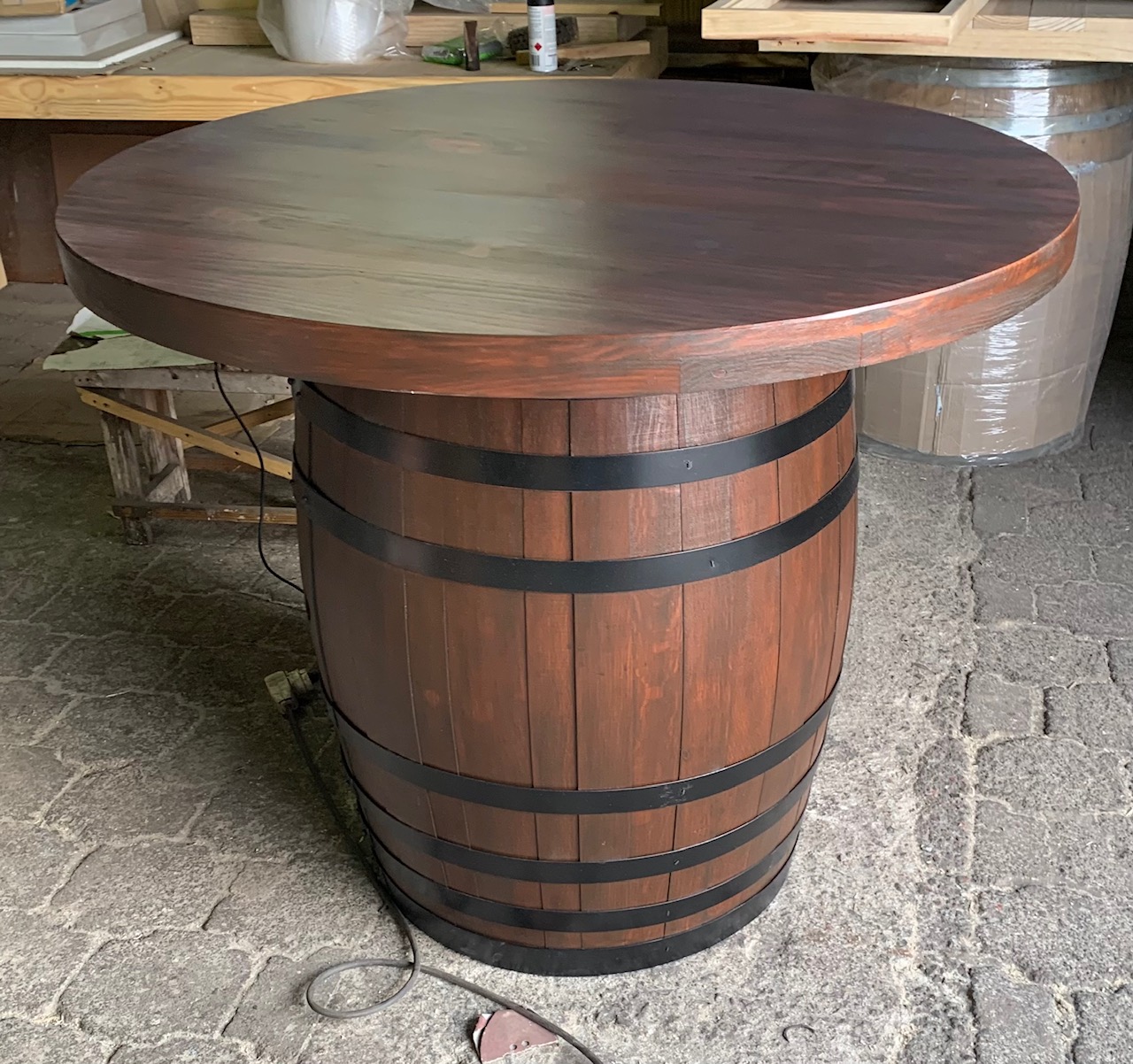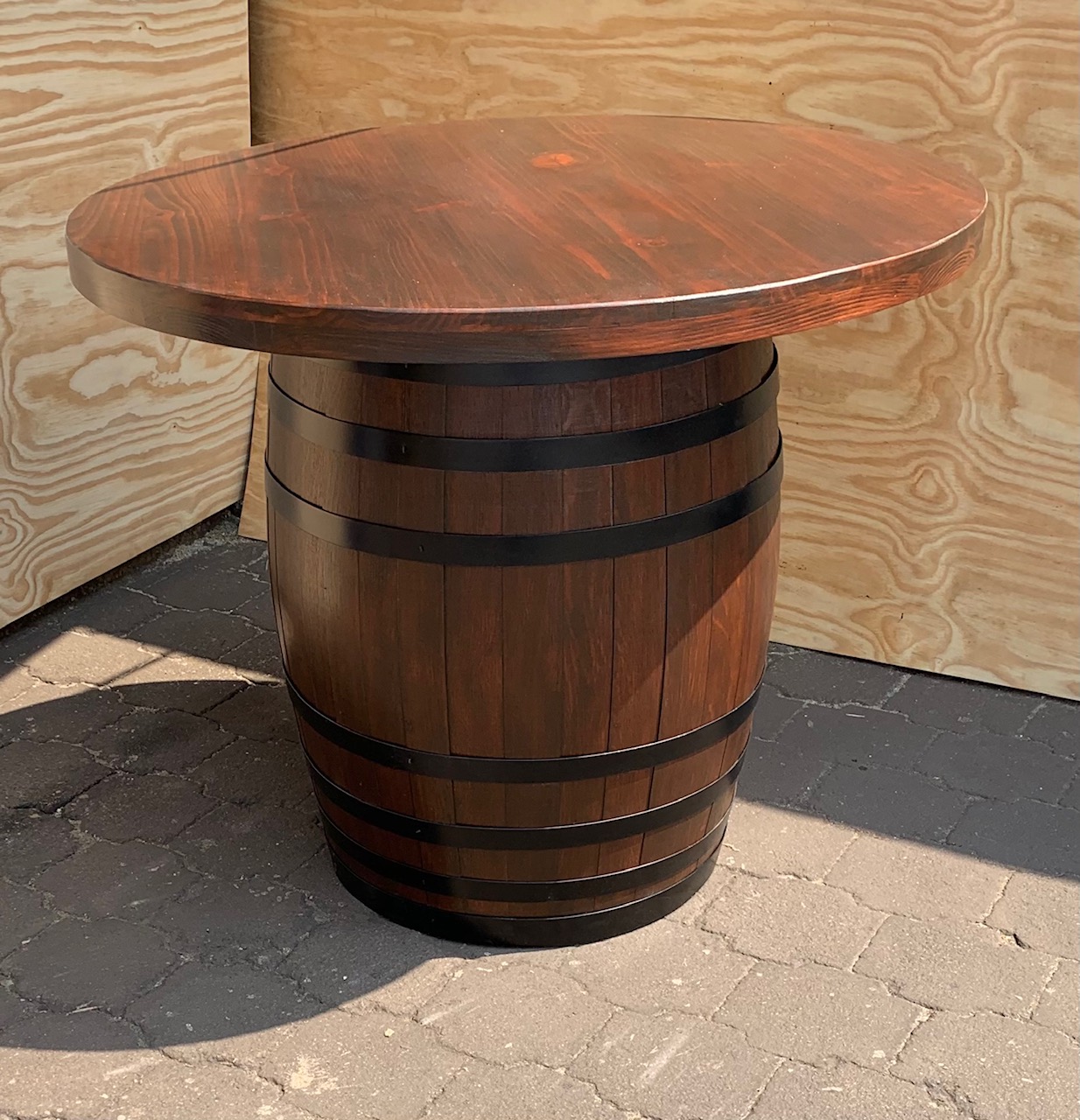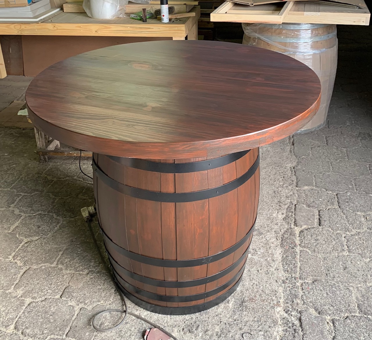 This beautiful wine barrel with table top will be a lovely addition to your Bar room/area. Sure to "enhance" entertainment area and top allows for comfortable work/serving area.