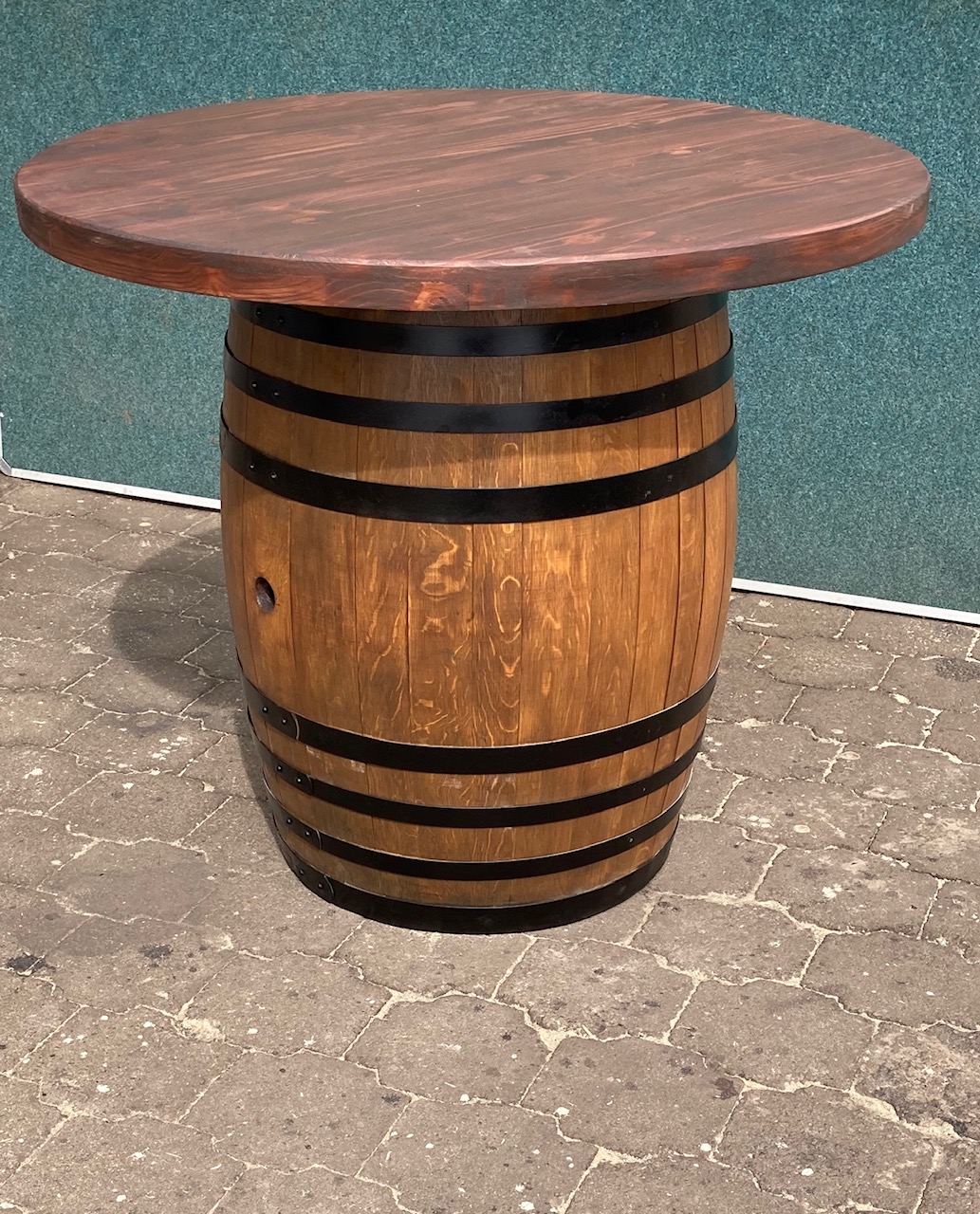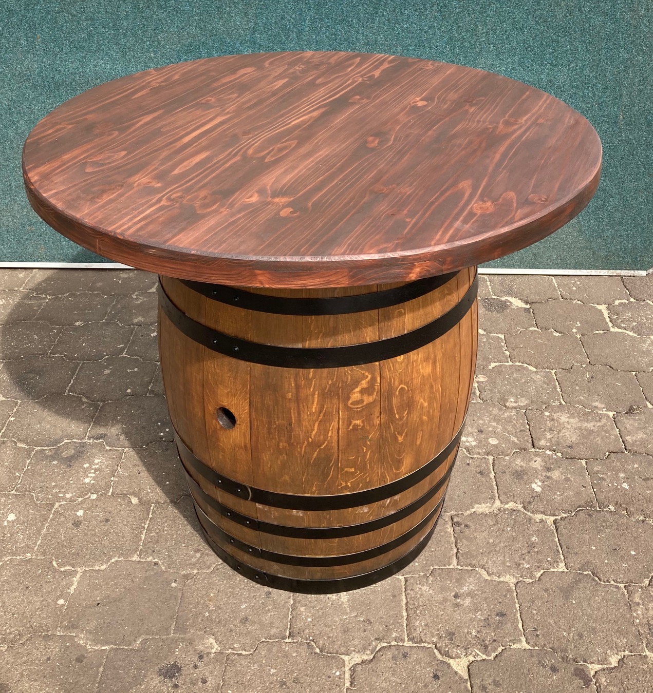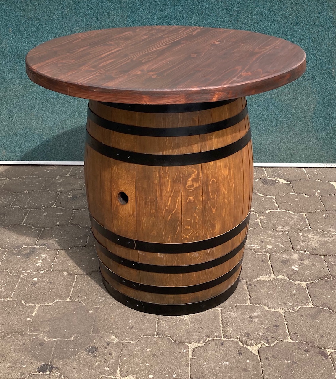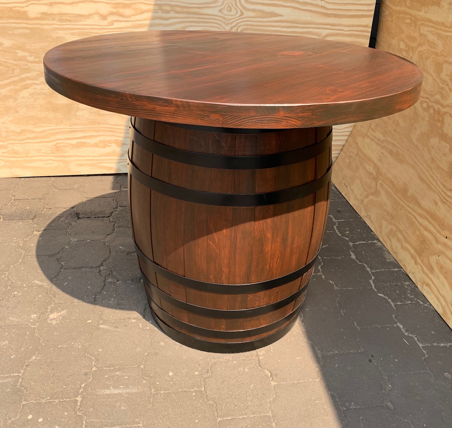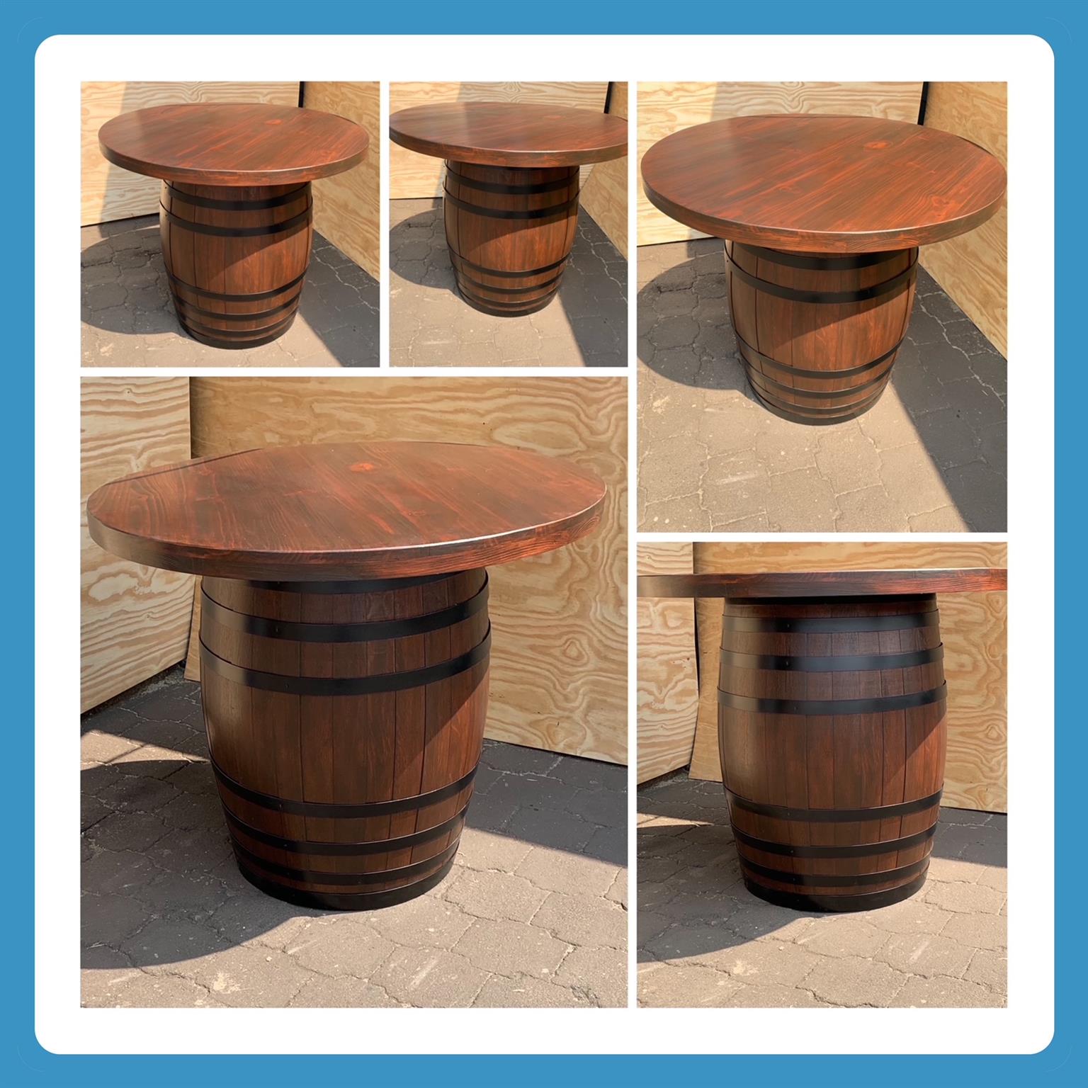 This beautiful wine barrel with table top will be a lovely addition to your Bar room/area. Sure to "enhance" entertainment area and top allows for comfortable work/serving area.