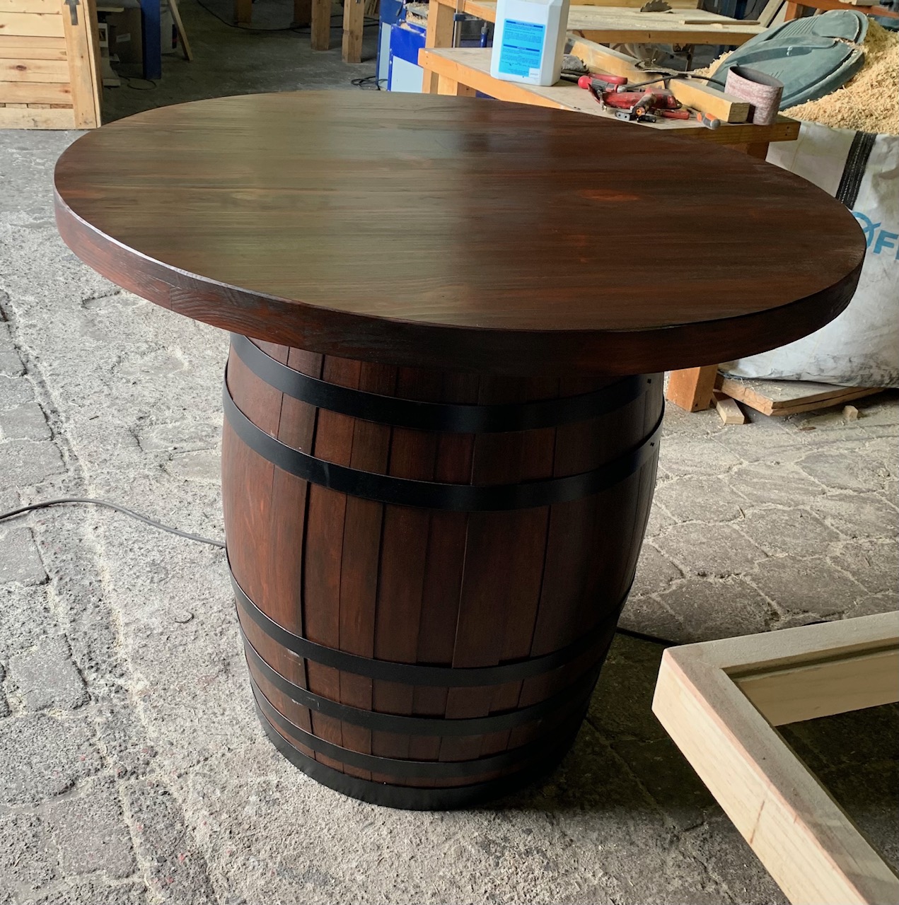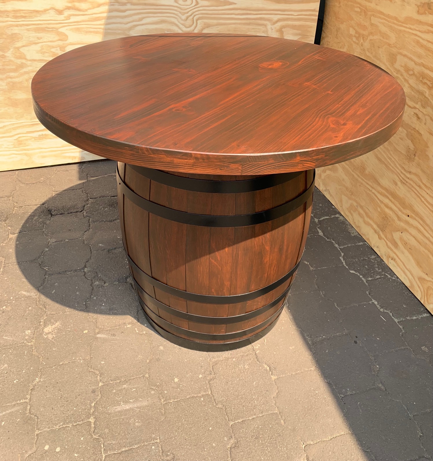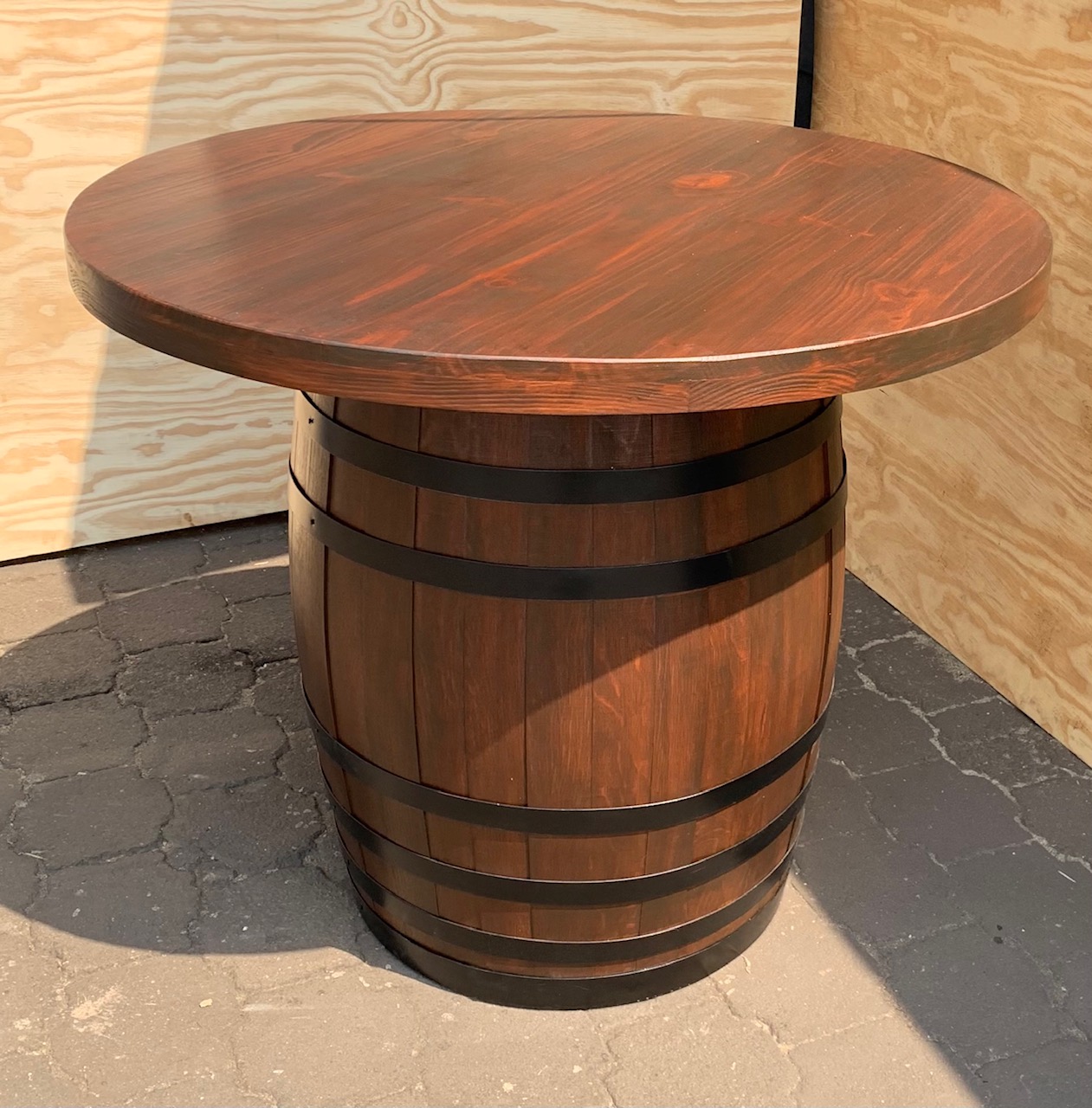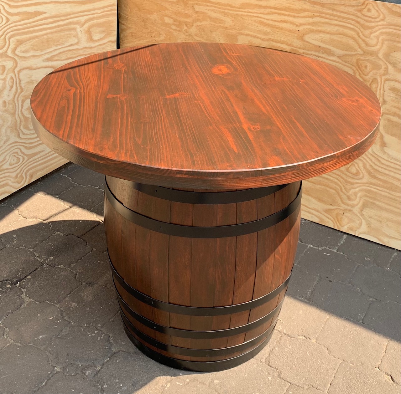 This beautiful wine barrel with table top will be a lovely addition to your Bar room/area. Sure to "enhance" entertainment area and top allows for comfortable work/serving area.