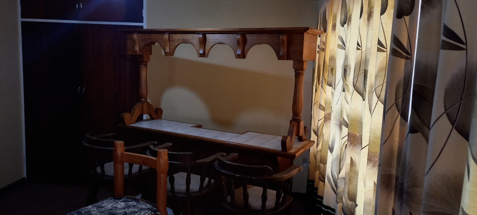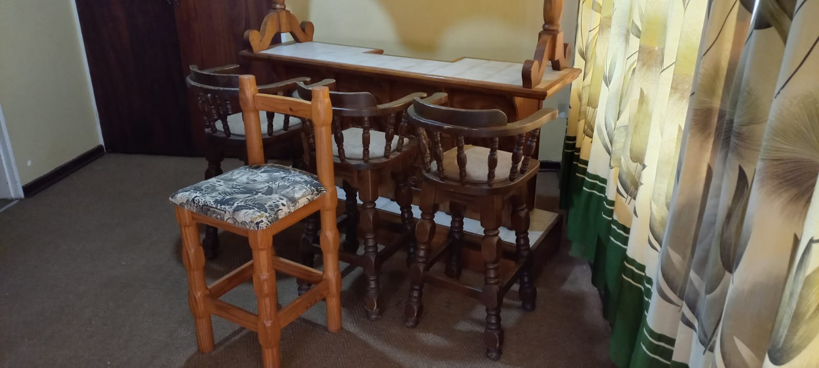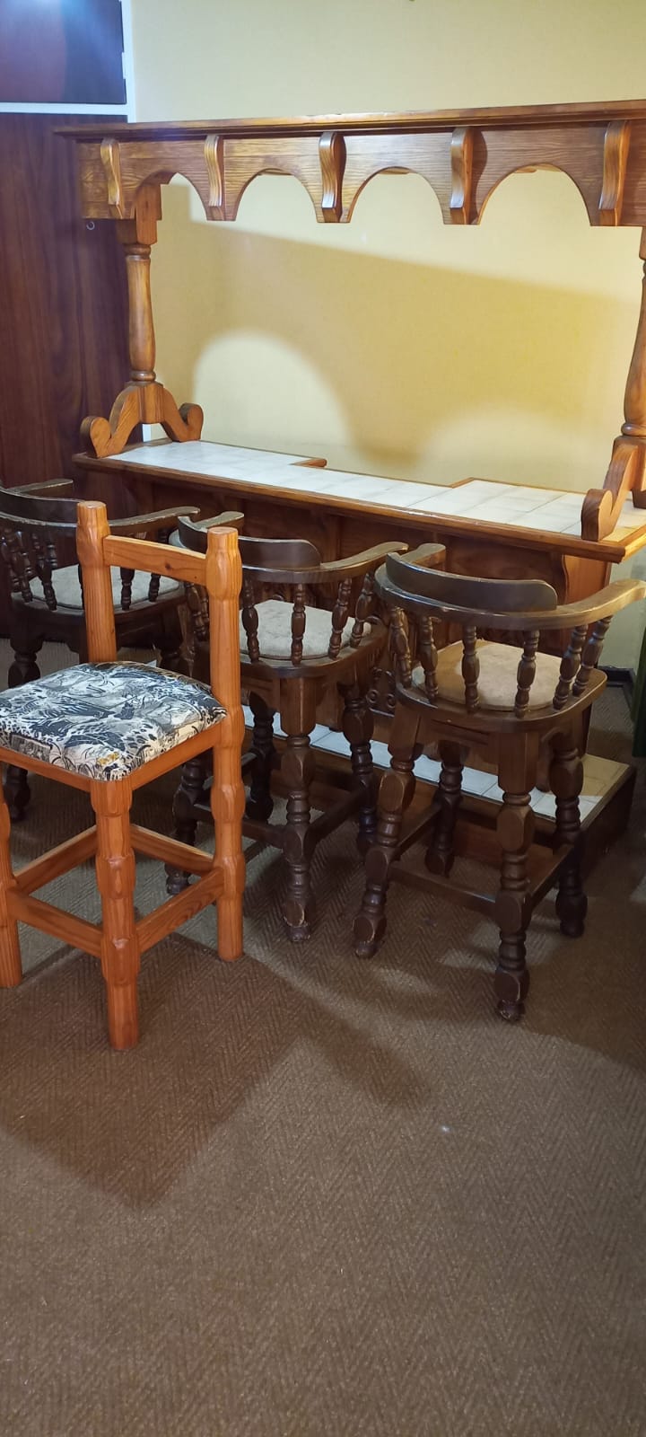 2 piece solid wood bar with 4 chairs for sale. Moving to new home, got no space for it. In good condition.