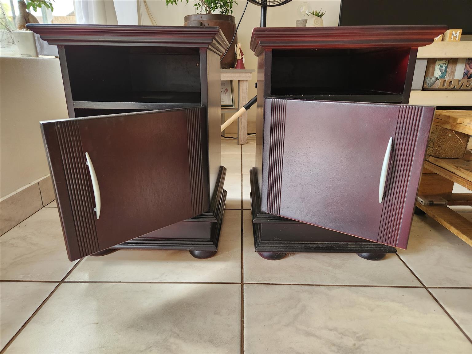 2 x Bedside pedestals with door, dark brown, good condition