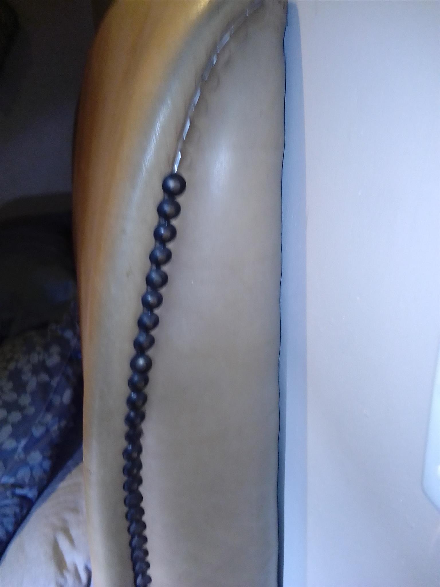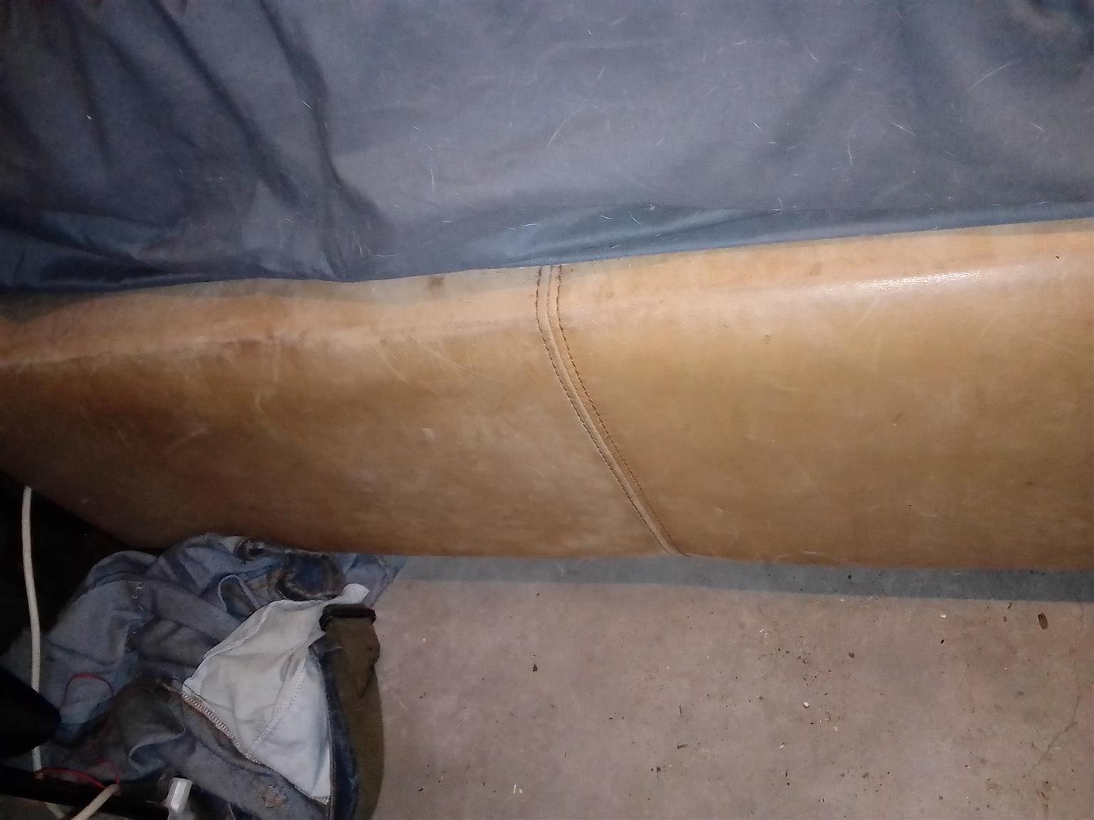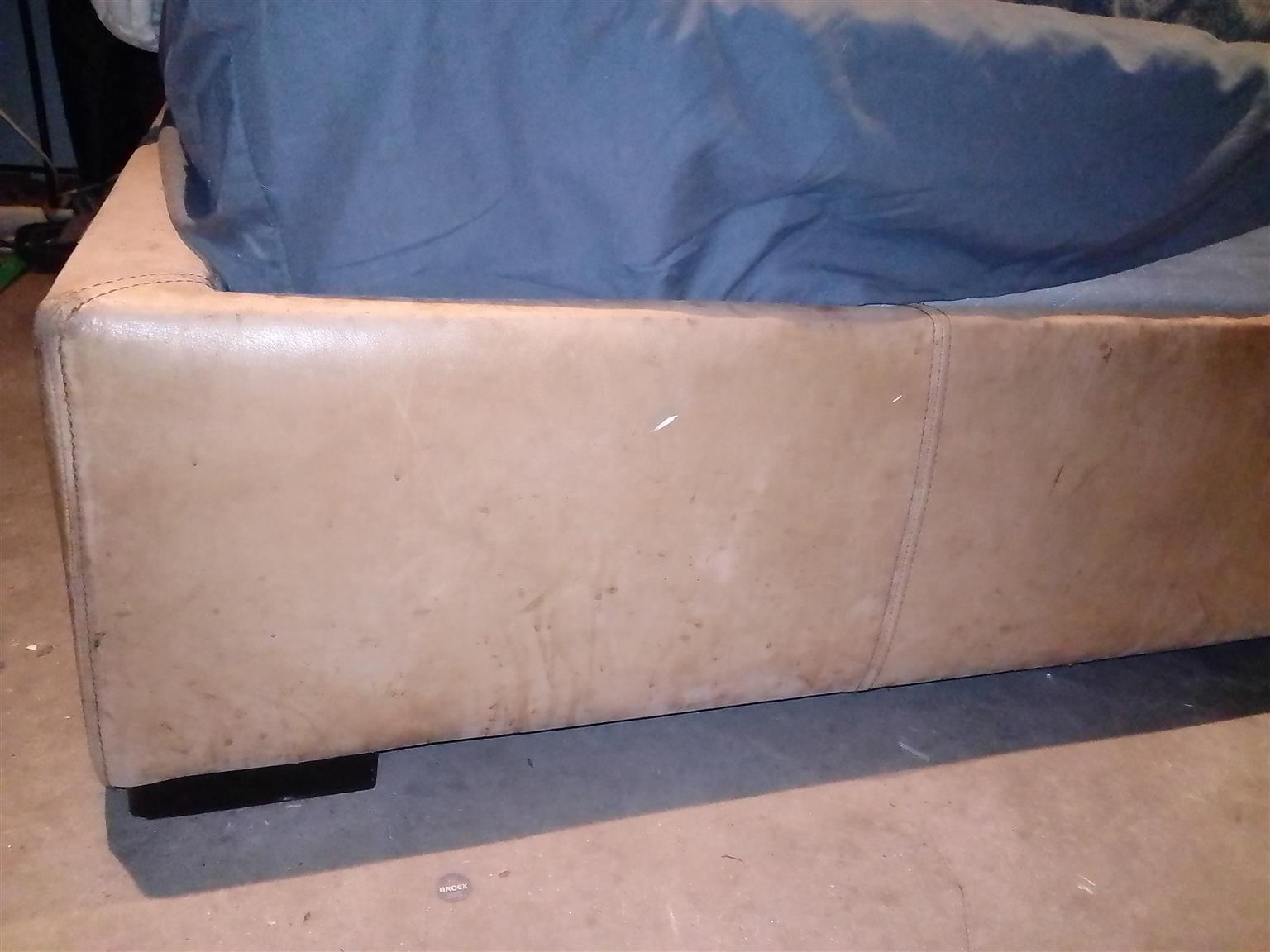 Coricraft camel colored leather base and headboard set! Its extra length! The headboard is a bit stained but will come out with leather polish, the base also has some stains! The base had to be reinfored in 2 places where the base has collapsed. But perfect now with the metal sheets! Neither the headboard or the base has any tears or lacerations! Just needs a good polish! My asking price is R6500. Price neg! Collection only please