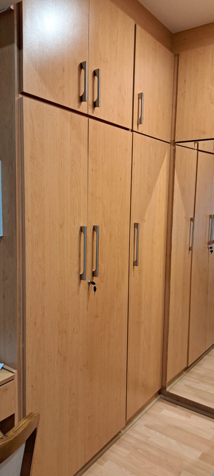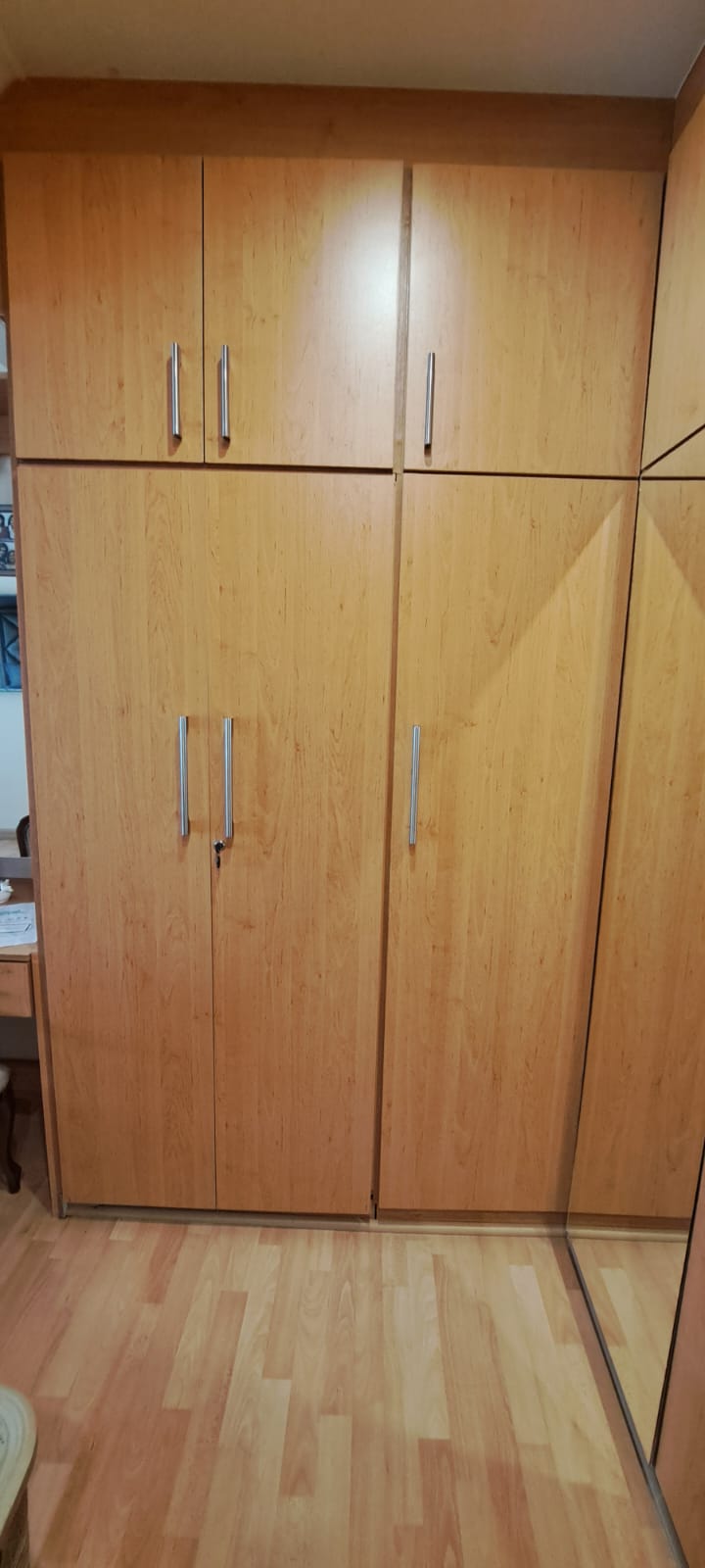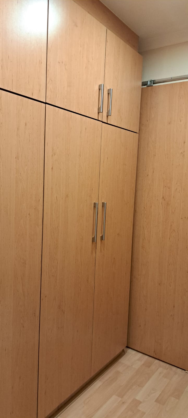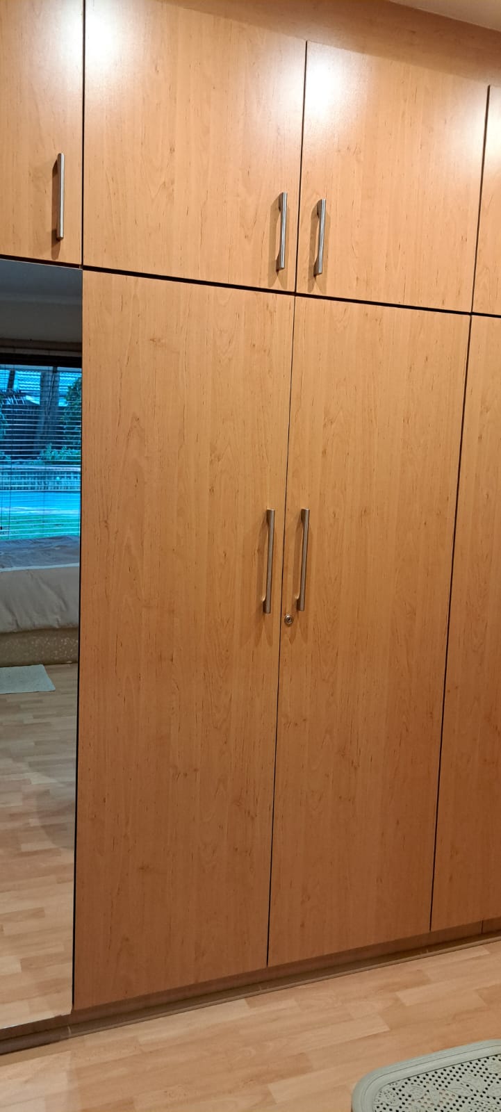 Used bedroom cupboards (built in) with masonite backing. Colour is Beachwood. In very good condition with no scratches. Excludes handles.