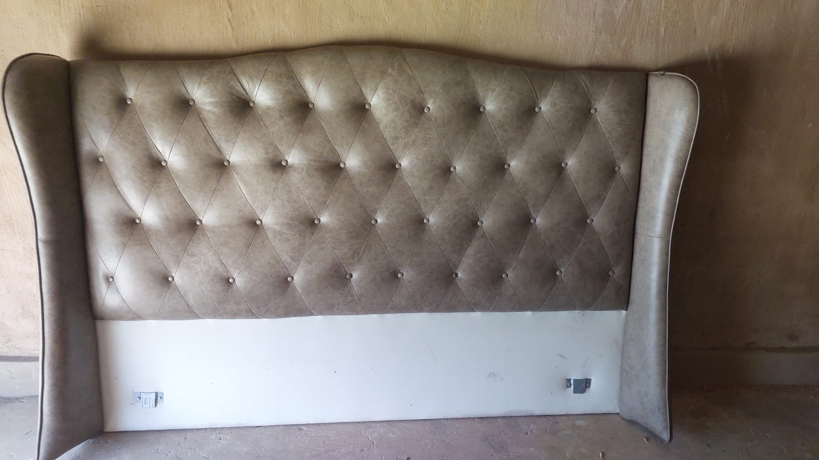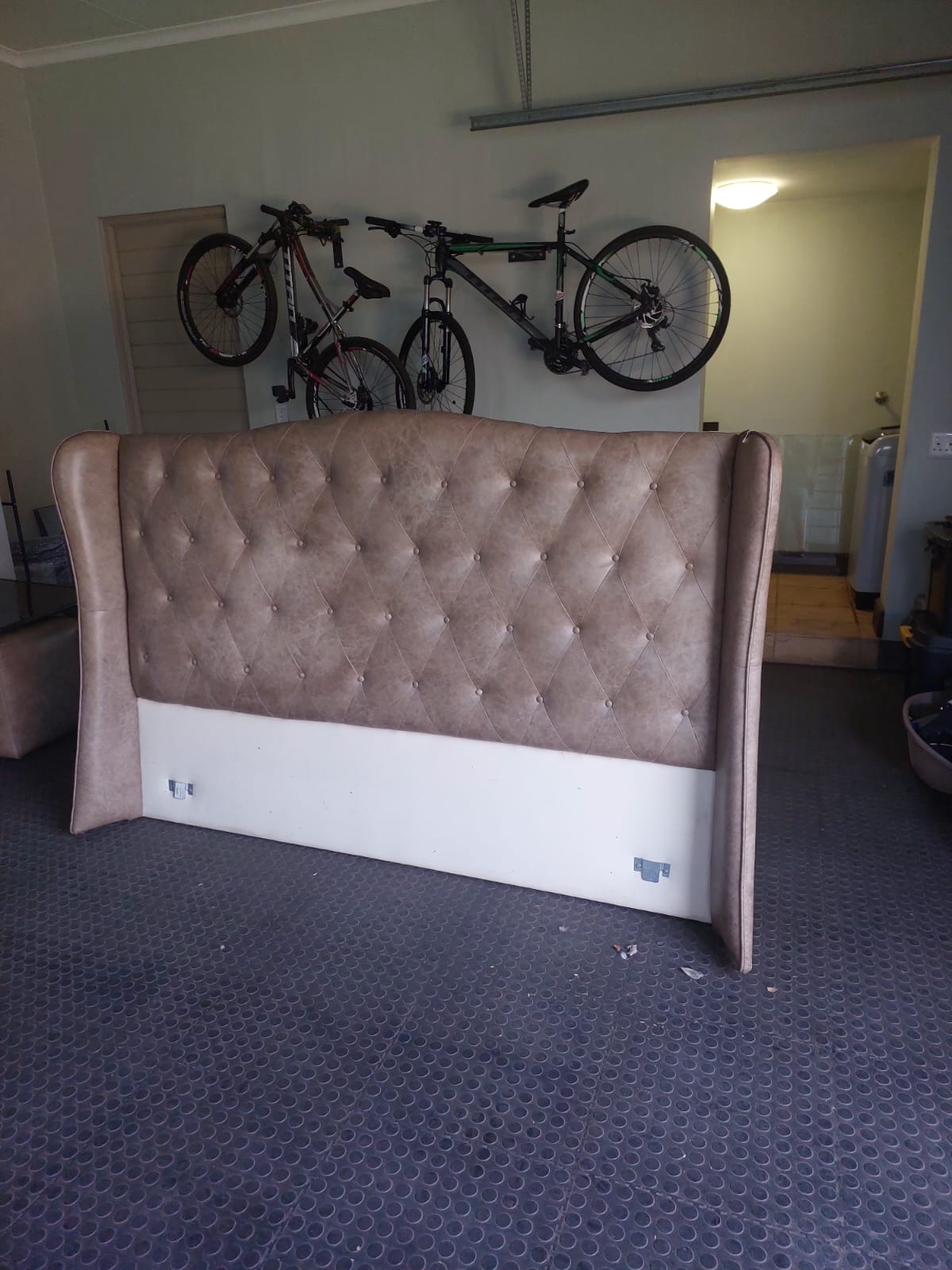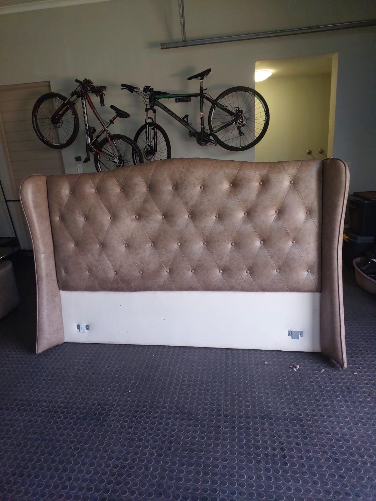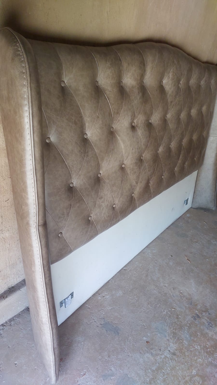 Almost new Bakos Brothers genuine leather king size upholstered headboard.