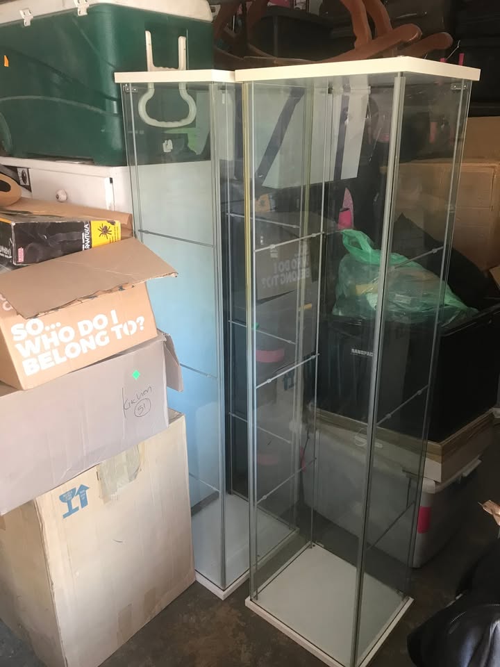 Glass Unit, 3 shelves, H162 cm, L40 cm, W35 cm. R1650 for one, R3000 for Both
