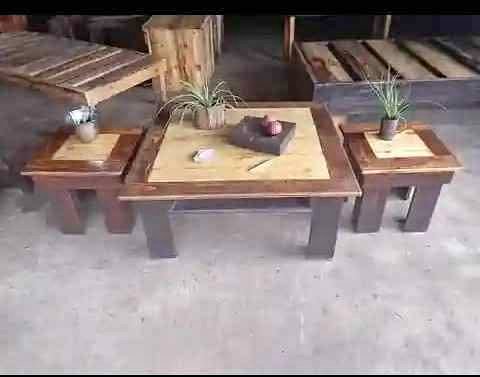 Palet coffee table set with magazine shelve and two side tables. Priced to sell.