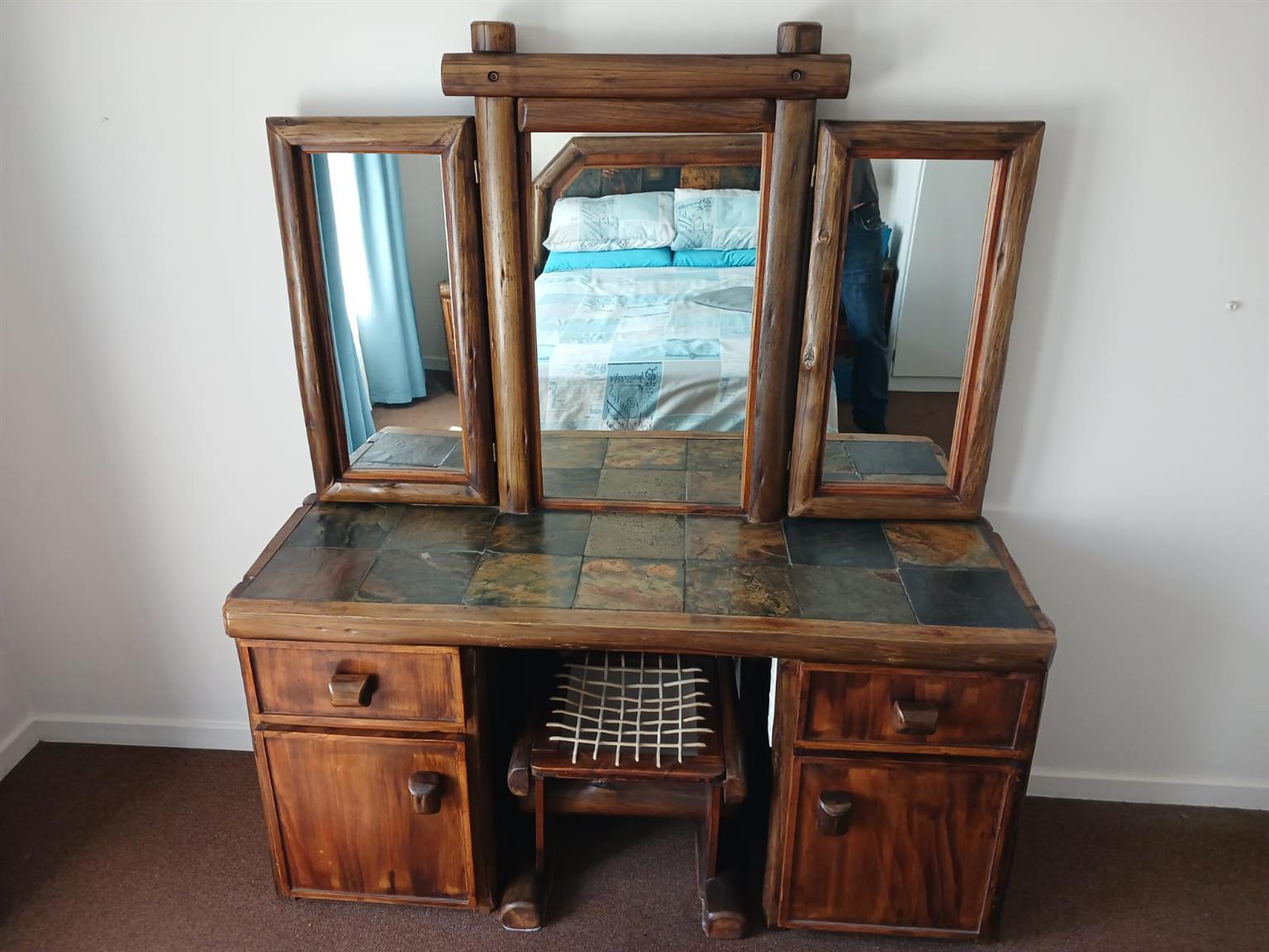 Rustic Solid wood Cabin Styled Dressing Table With Chair