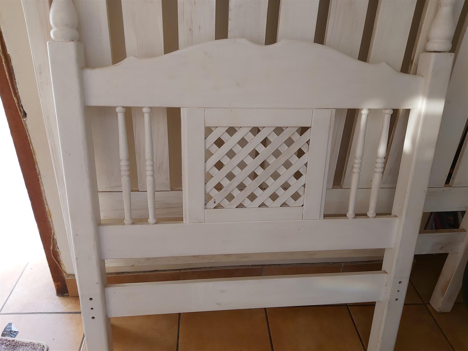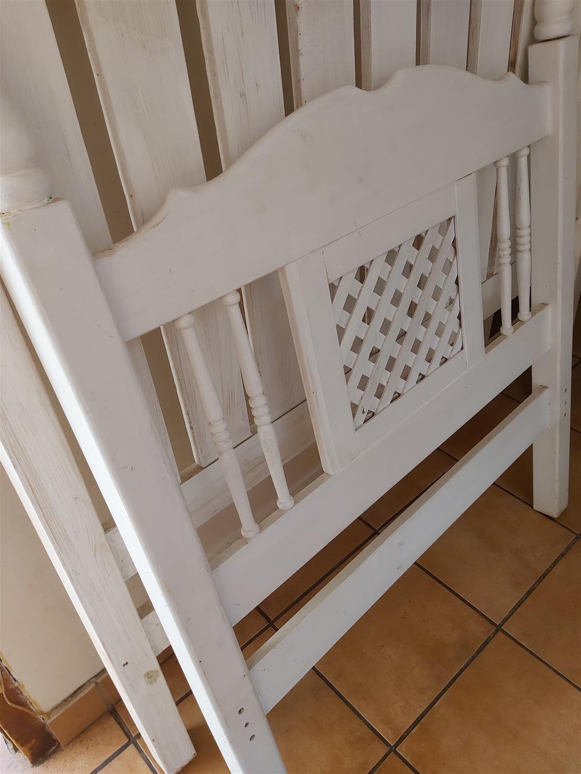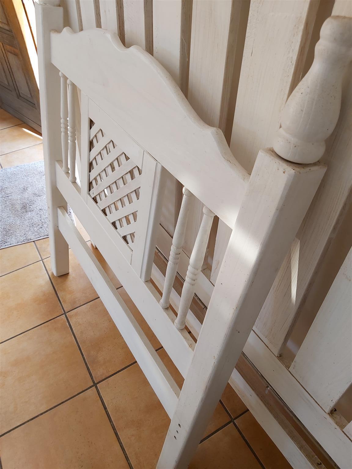 White wooden headboard for single bed. Still is very good condition. It is the headboard shown in front on the photos.