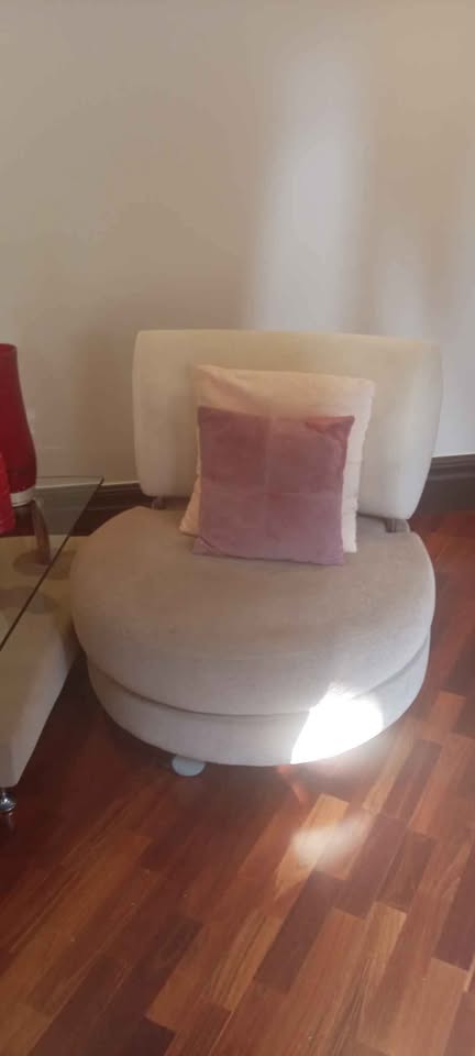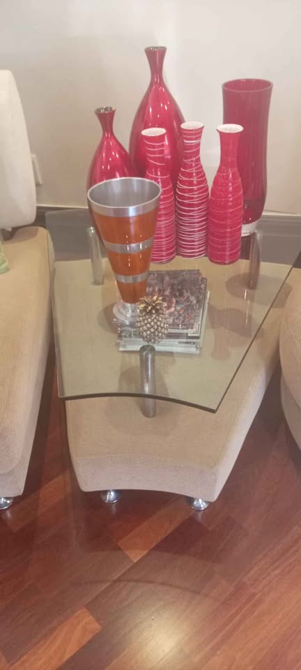 Stunning Sectional Luxurious Lounge Suite - 5 Seater - 6 Piece Description: Experience elegance with this luxurious lounge suite, featuring a sectional glass top side table and a glass top centre table. The suite is in excellent used condition. Configuration: The suite comprises three single-seater sections and one double-seater section, offering flexible arrangement options. The glass top side table can be placed according to your preference, complemented by an oval-shaped centre table. Key Features: - 5-seater luxurious lounge suite - Sectional glass top side table - Glass top oval-shaped centre table - Excellent used condition - Elegant design with flexible configuration options Serious buyers only Collection from Bedfordview. Please contact Jackie on