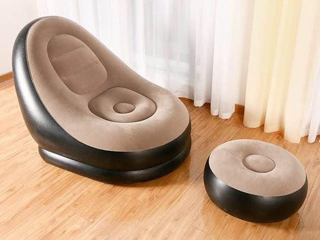 Made by order FLOCKING SOFA SET INFLATABLE - Ergonomic Design To Support Your Body & Comfortable Sitting, Siesta & Rest - Super Comfortable - Eco-Friendly, PVC+Flocking - 2 Patches Included - Good Decoration For Living Room, Bedroom, Games Room, Dormitory Etc Includes: 98cm x 86cm x 116cm (Sofa) 62cm x 32cm (Foot Rest) Colors: White&Red Black&Blue Black&Khakhi Black&Purple Price: R550 Courier to be quoted