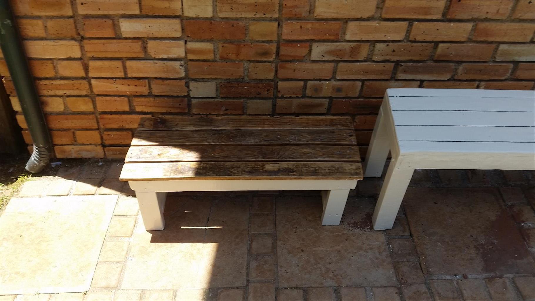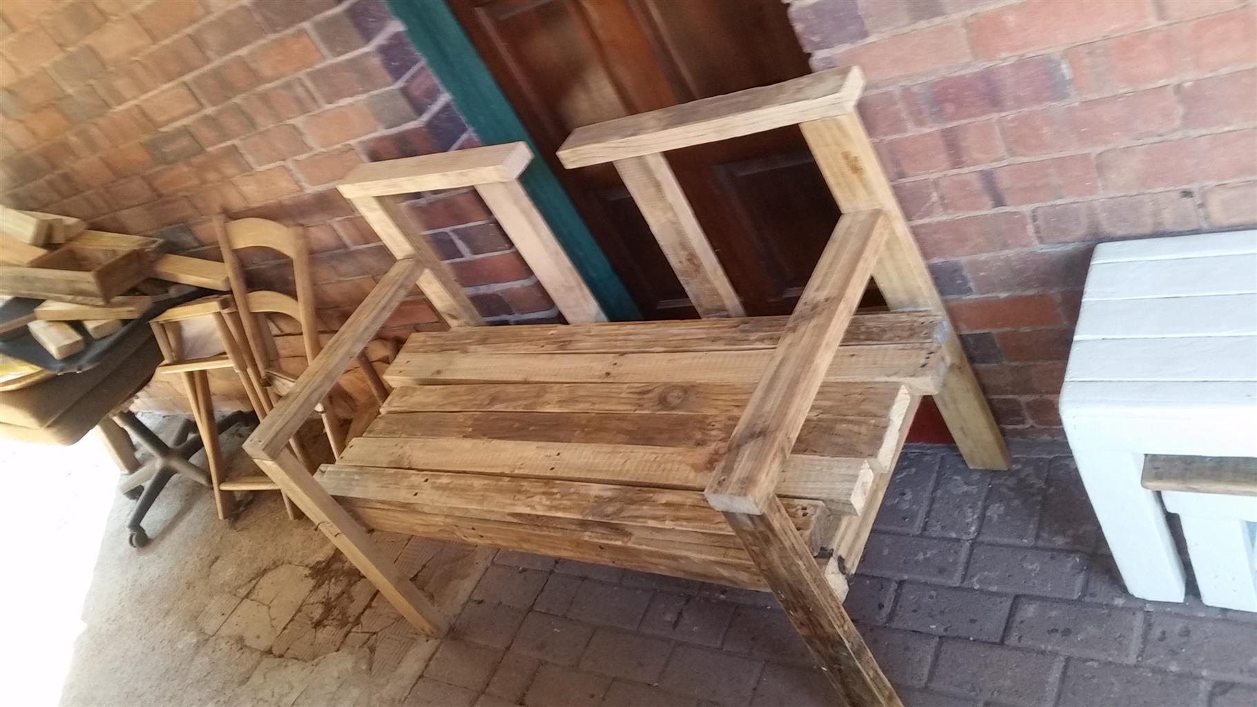 Self crafted benches made from recycled wood.