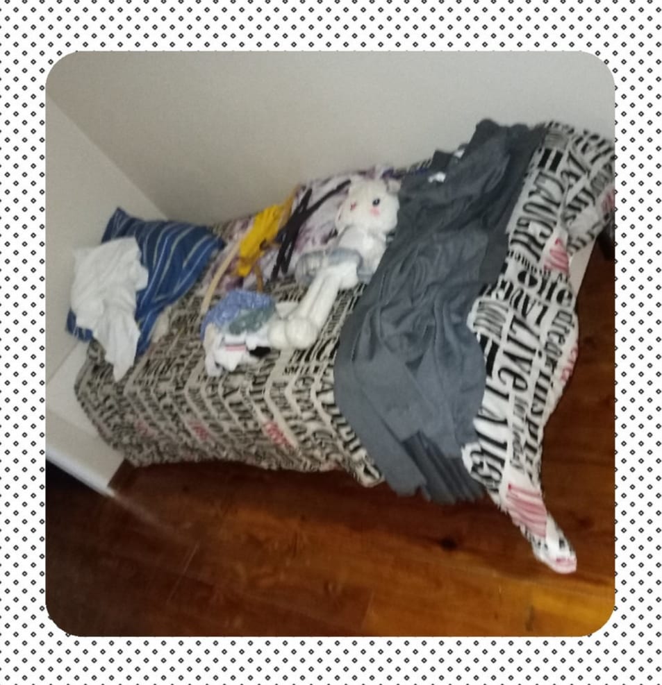 Single bed with mattress. More details: