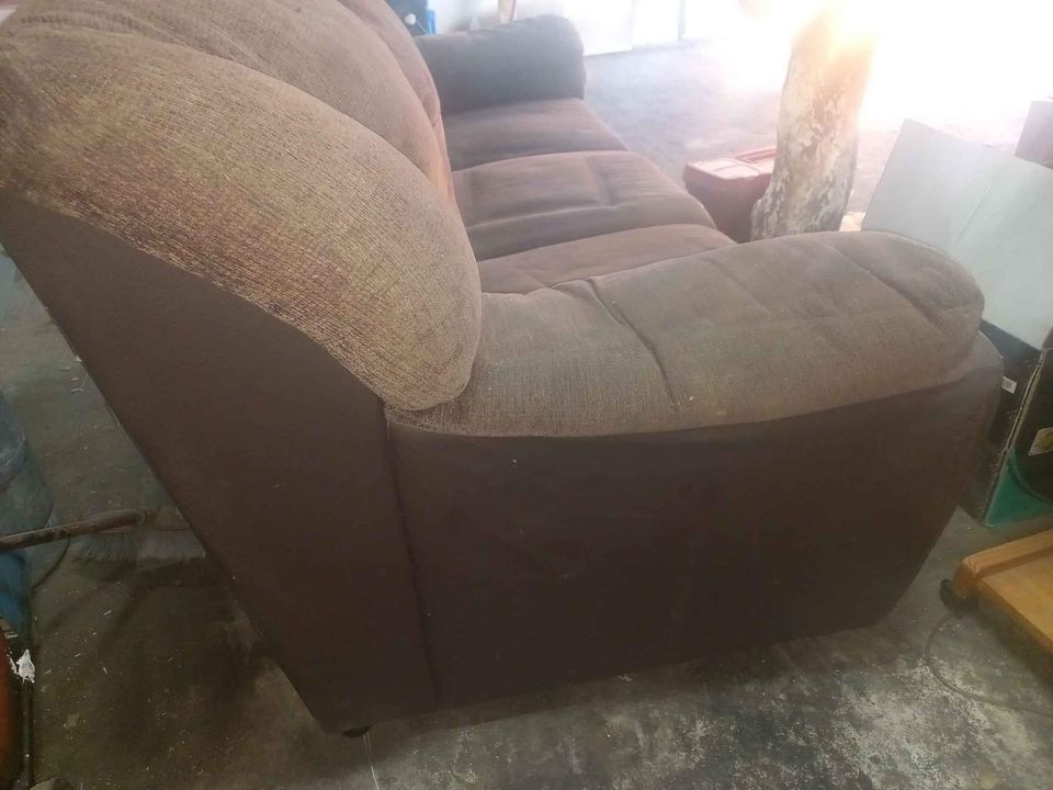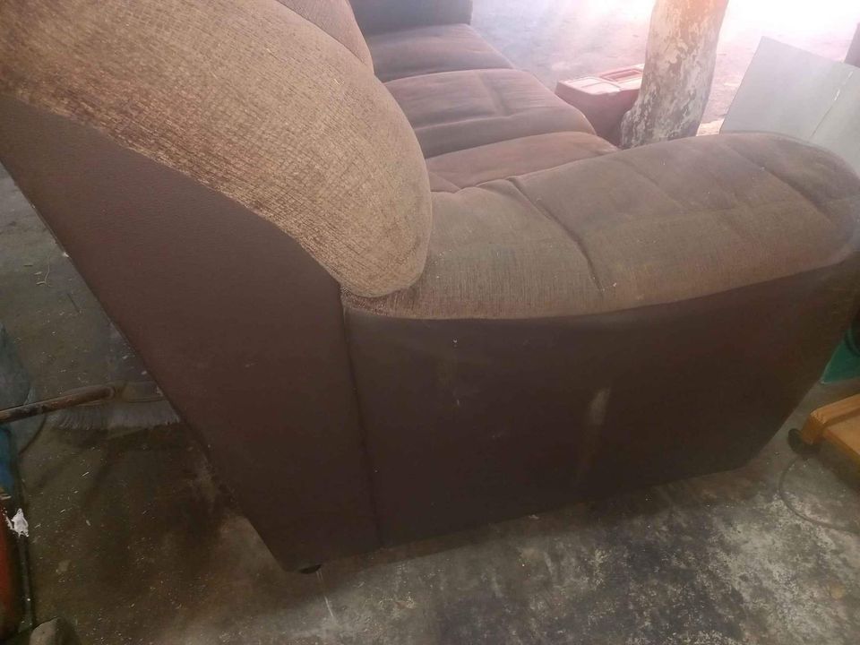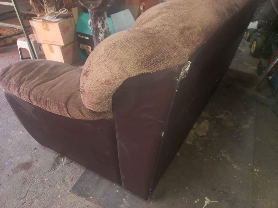 Nice 3 seater couch and wood computer stand on wheels for collection in Tedstoneville Coontact Juan [hidden information]