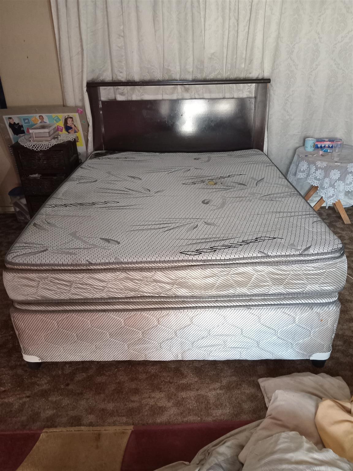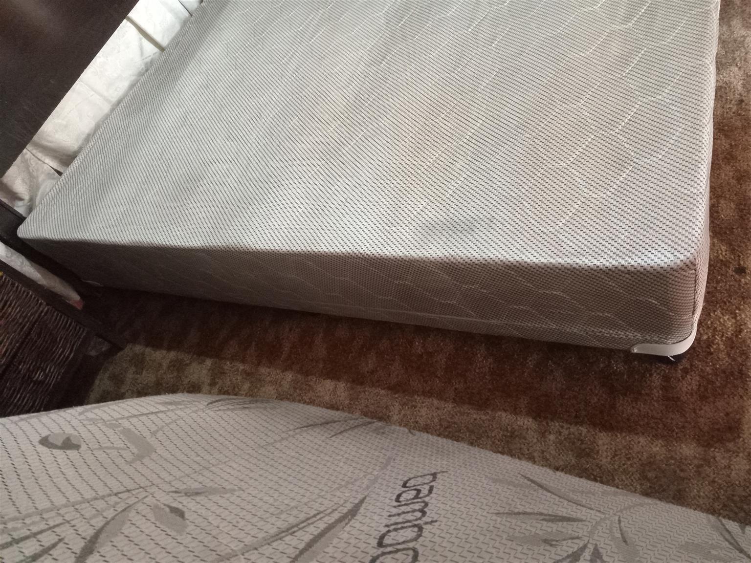 Its a bamboo queen size bed for sale, used, selling condition, reversable matress, 1x small hole in matress, reason for selling i am relocating not going to use anymore