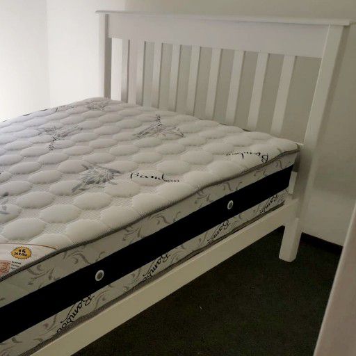 Wooden Double Bed Frame, supplied in Flat pack form, incorporating fitted Headboard. Sllatted wooden Base, very Sturdy. Some assembly required, we offer assembly service on delivery.
