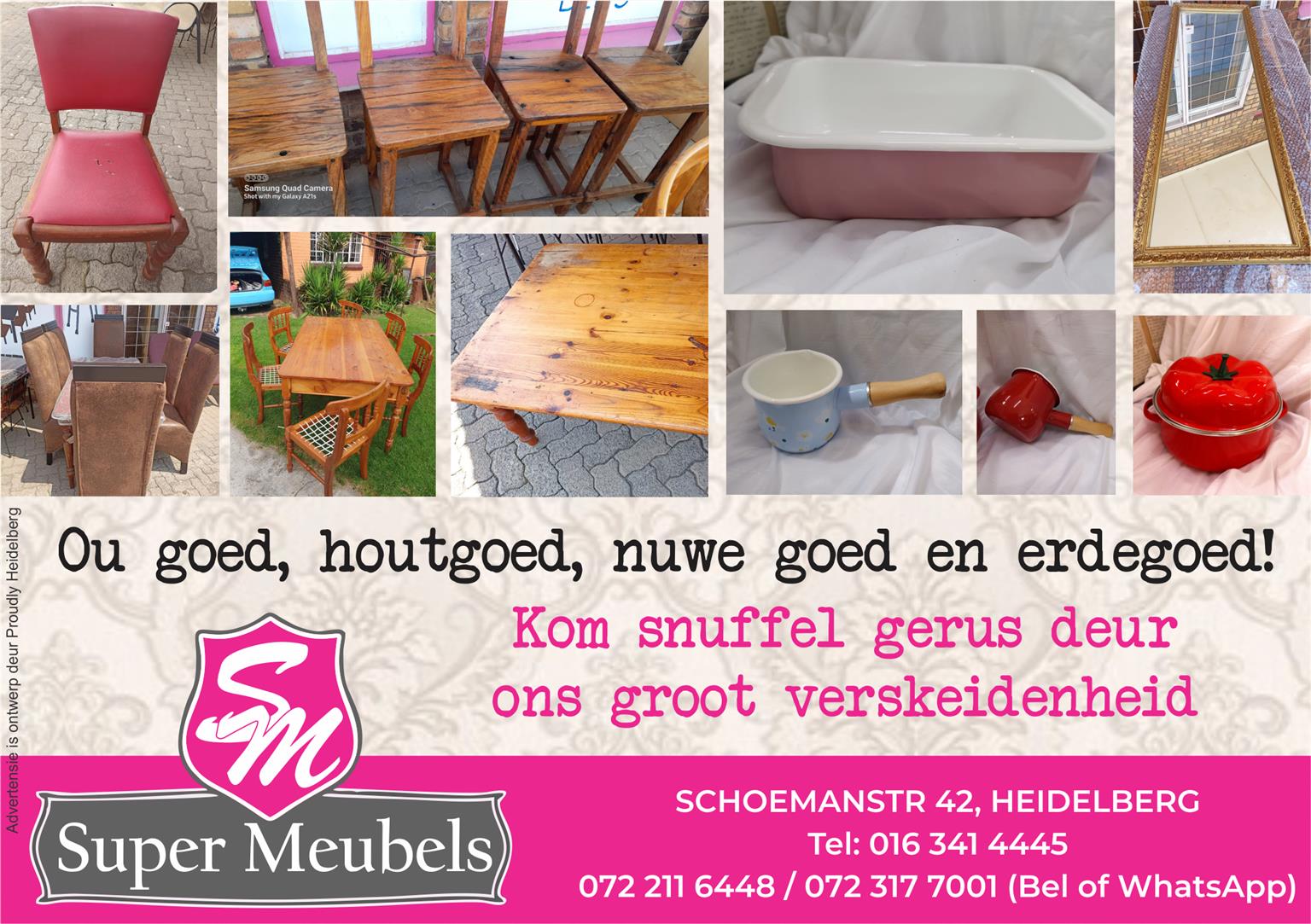 Hier is ou goed, houtgoed, nuwe goed en erdegoed. Jy moet kom snuffel, elke hoek en draai.