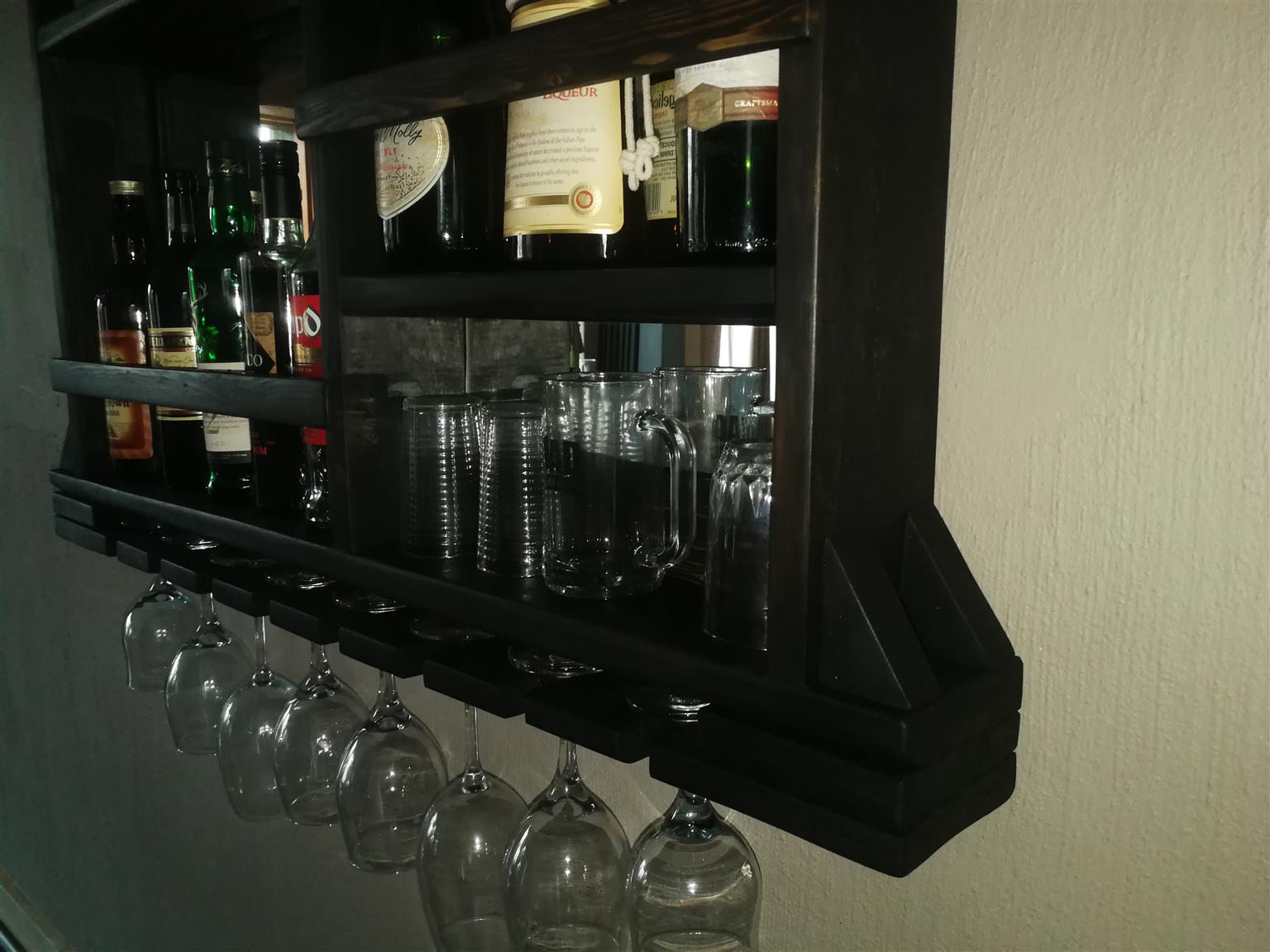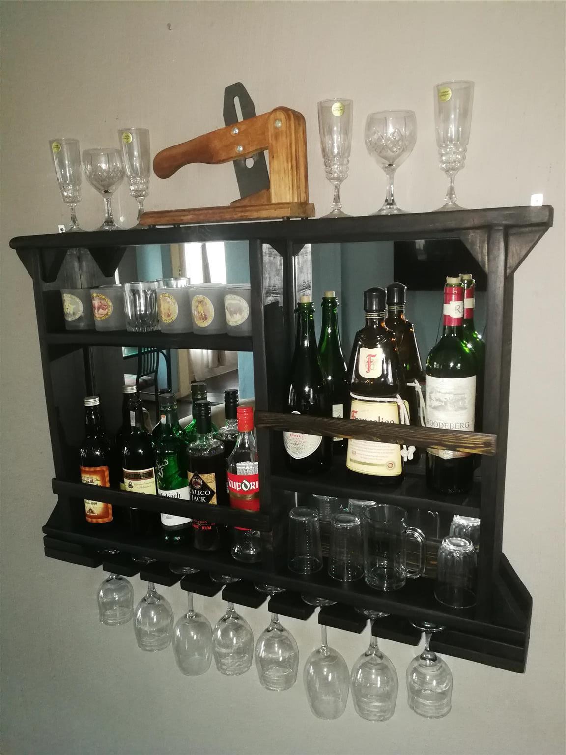 A self made custom built Bar rack ideal for a home pub, man cave, guest lodge, pool or Lapa. Dimensions are 1000mm x 700mm x 120mm x 25mm. Easily mounted with 4 L shaped brackets. The wood has been oiled and treated. To be collected in Henley on Klip. Pls whatsapp Gary - 0820650884view more (contents not included)
