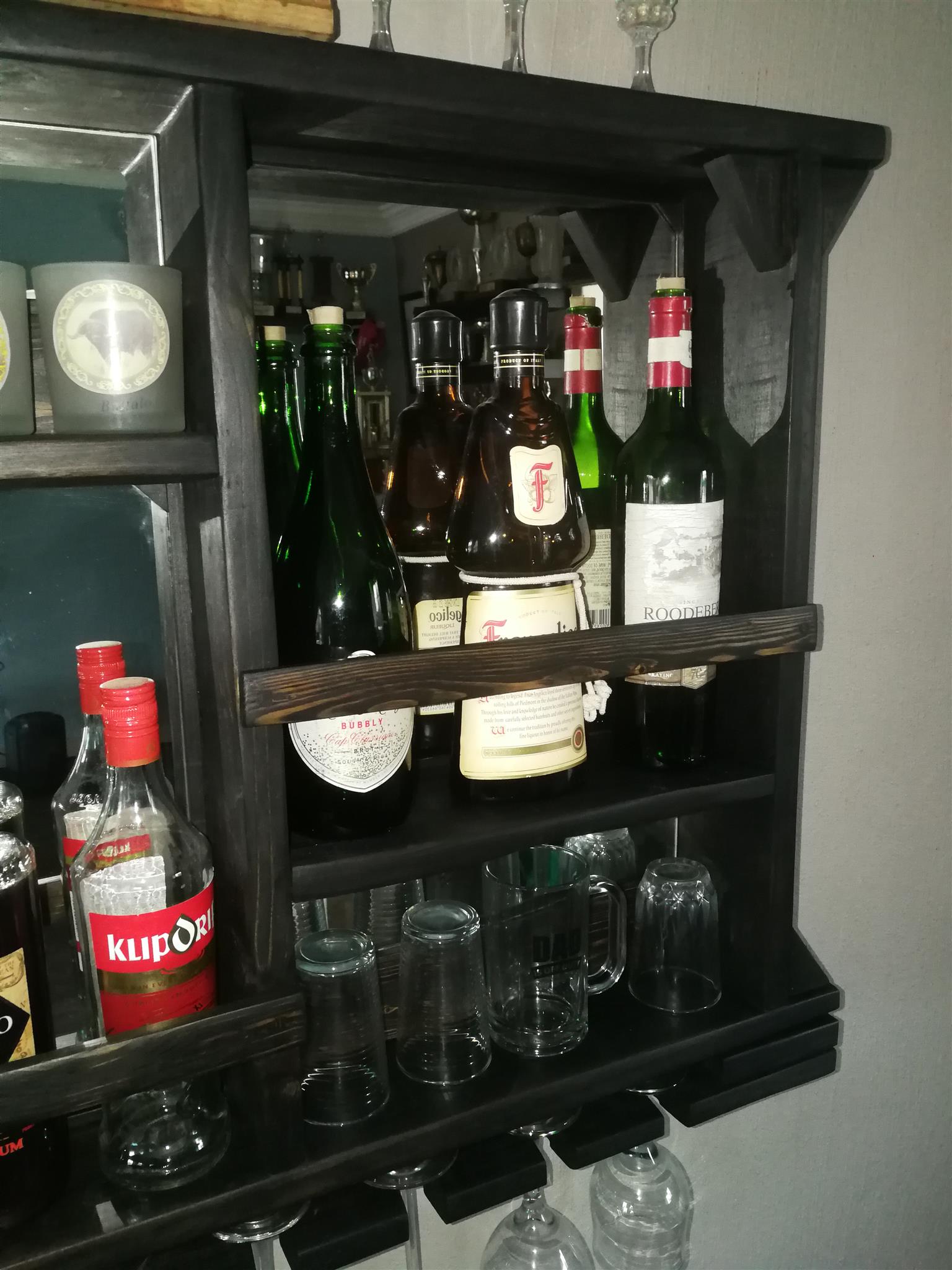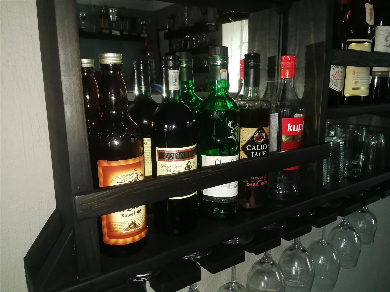 Custom made Pub / Wine rack ideal for a home pub, man cave or Lapa. Dimensions are 1000mm x 700mm x 120mm x 25mm. To be collected in Henley on Klip