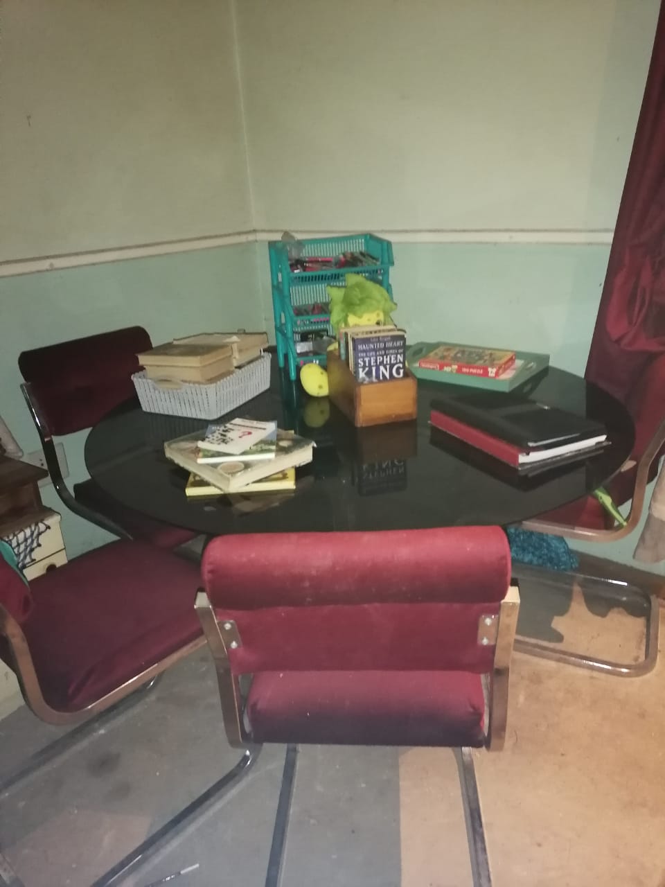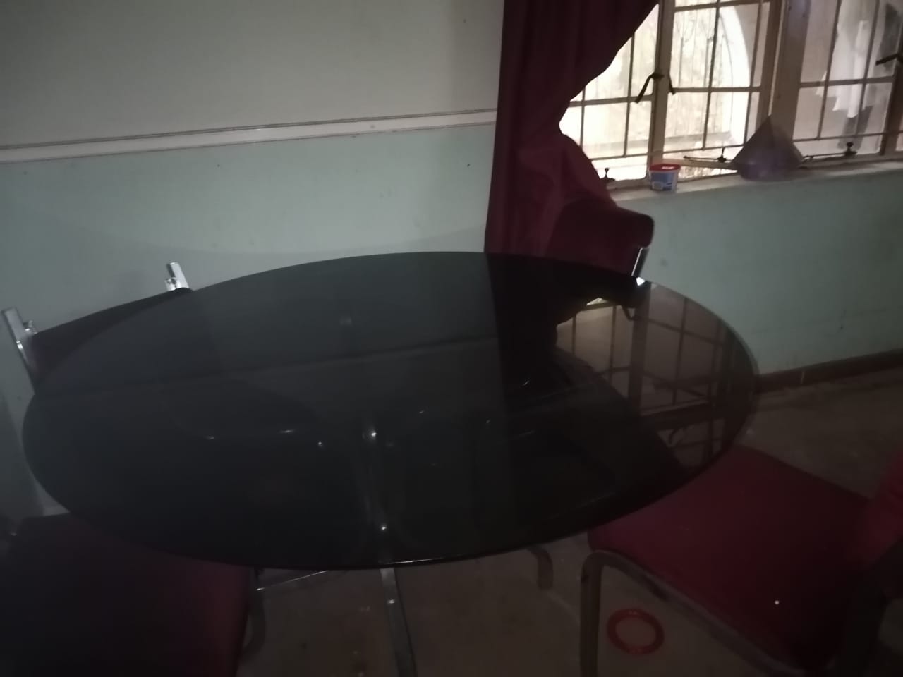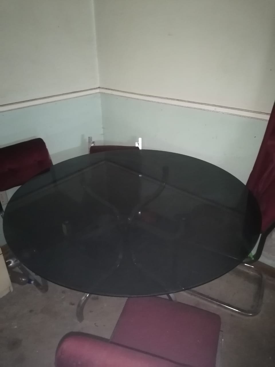 Stunning glass dining room table glass is in amazing condition there's also 6 chairs that come with it