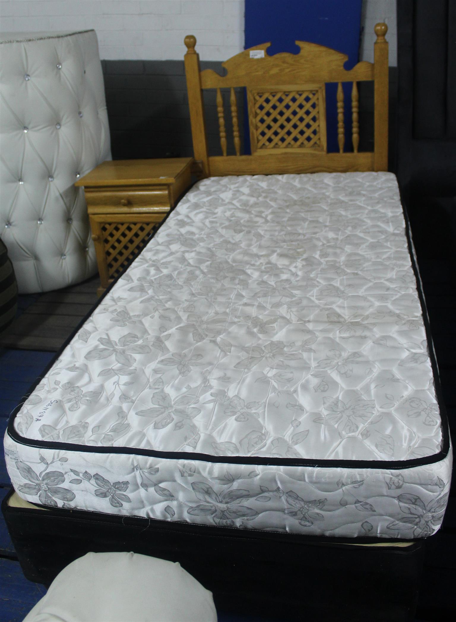 BLACK & WHITE FOAM SINGLE BASE SET WITH BROWN WOODEN HEADBOARD&PEDESTAL