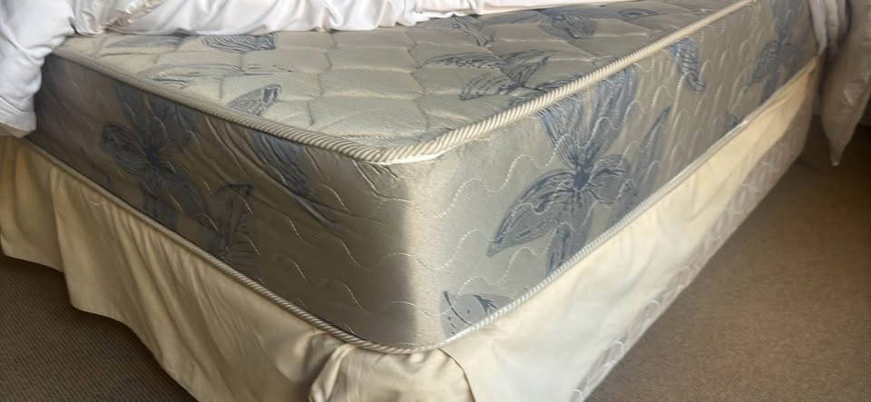 ✨ Includes: bed base frill, mattress protector & headboard (good condition)