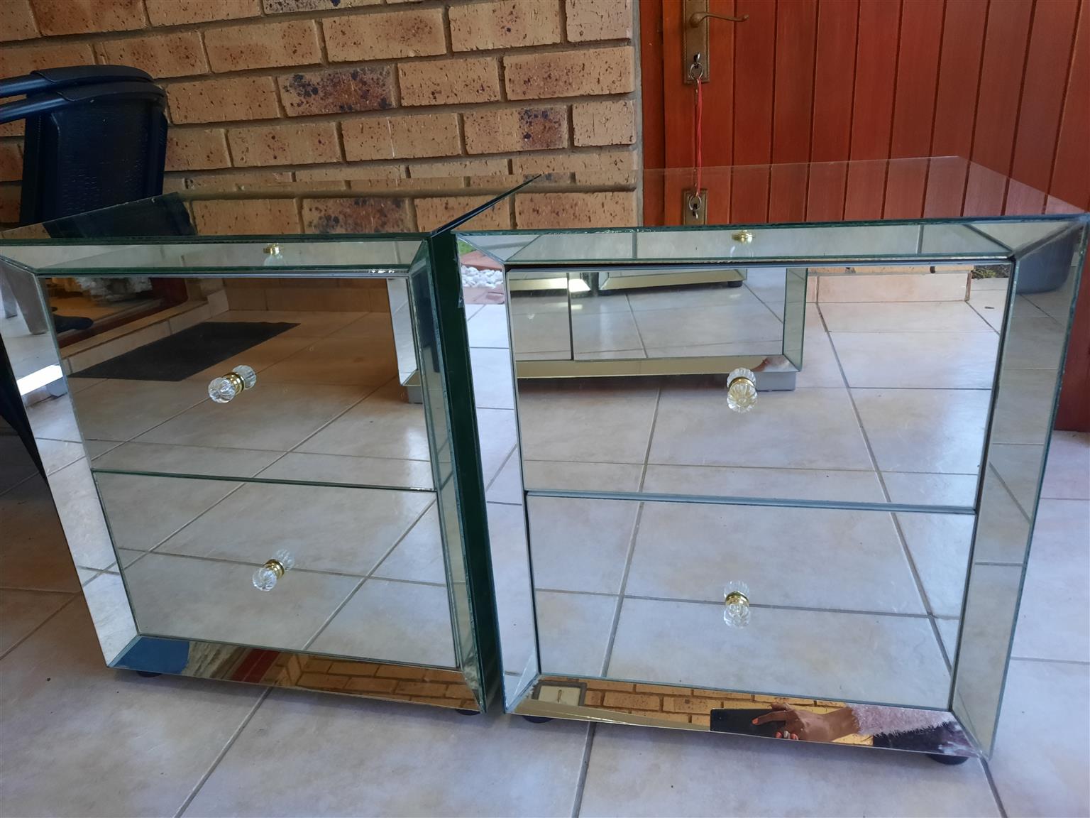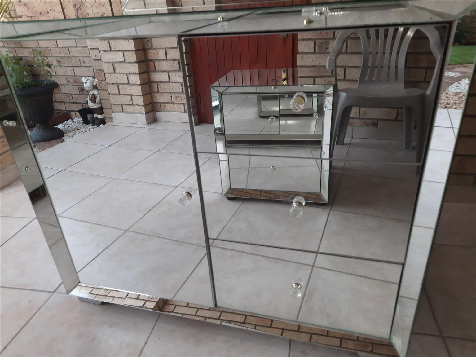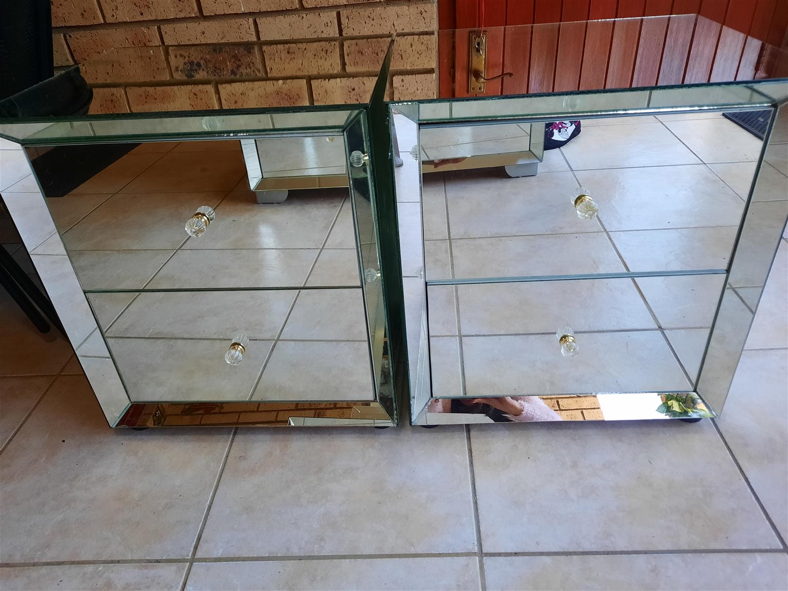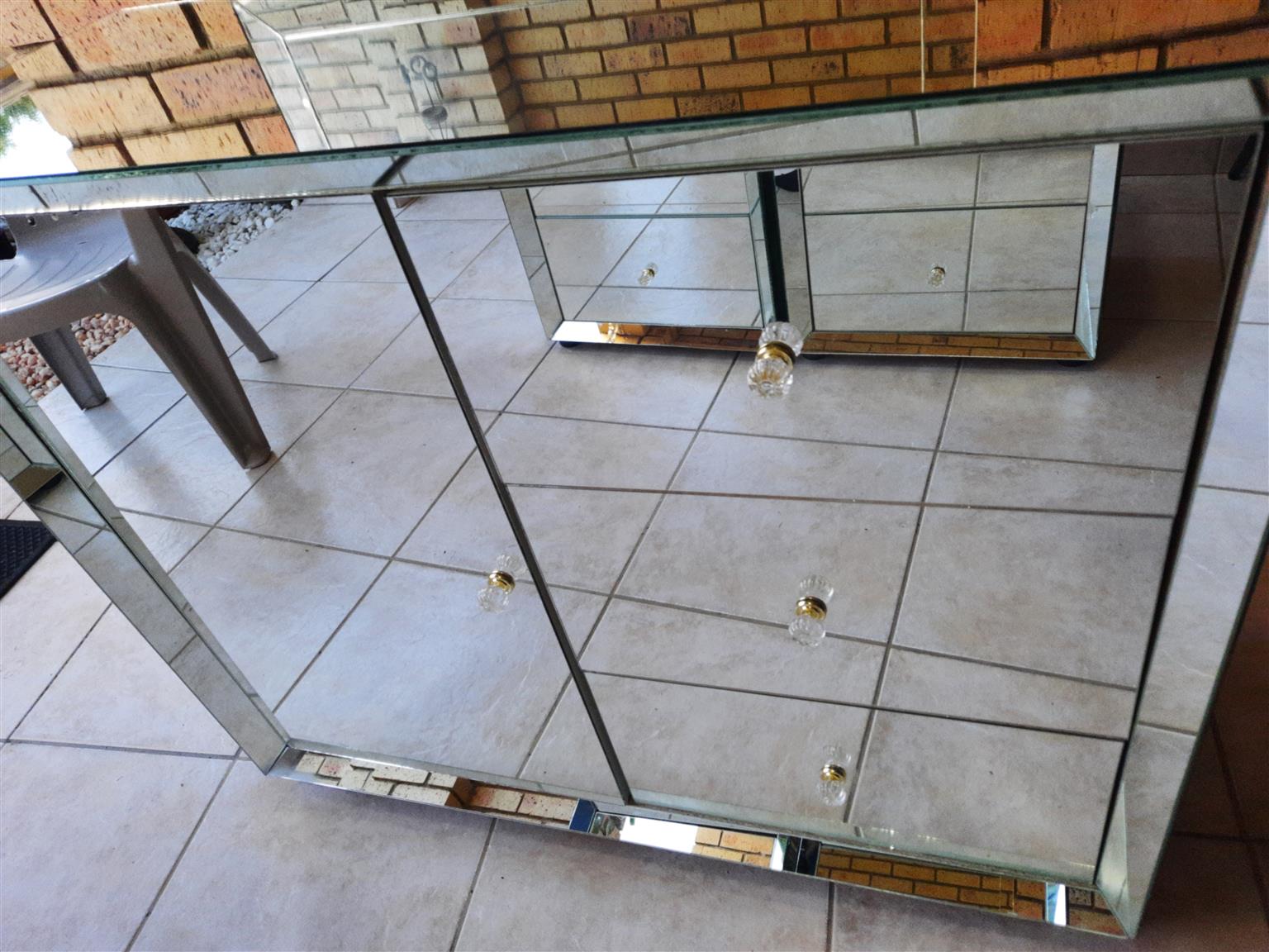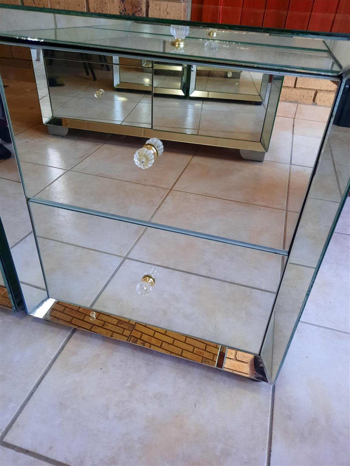 2 x Mirrored Pedastals and 1 x Mirrored Dressing Table / Sideboard.