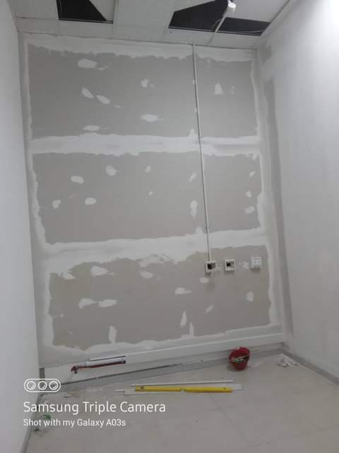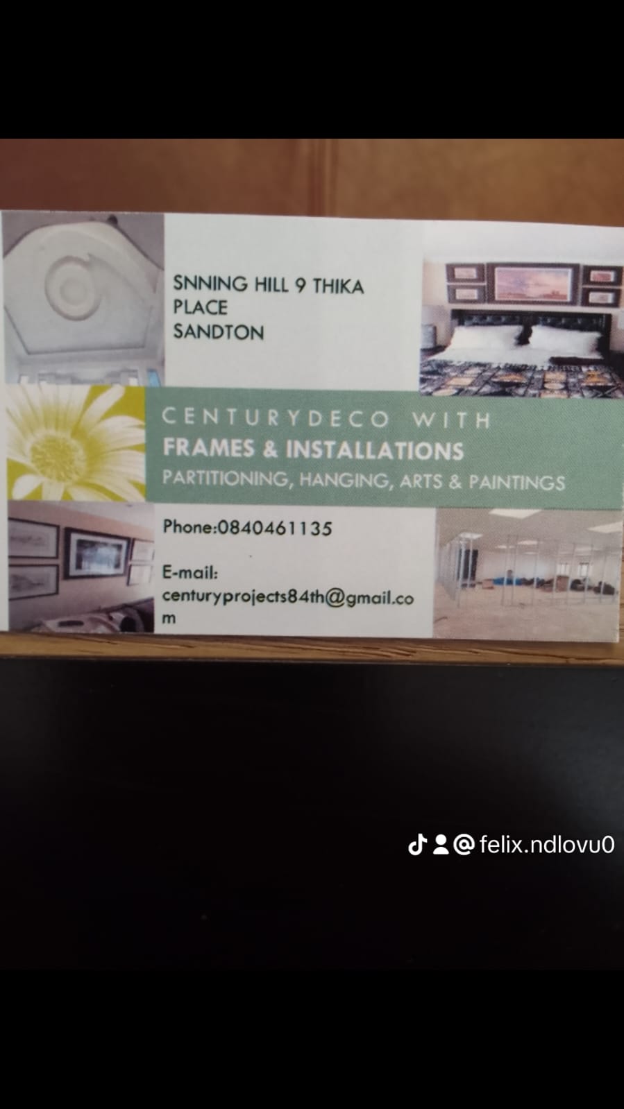 Deco with frames hanging all types etc: Paintings, Box frames and Mirrors and anything that we can. Partitioning.