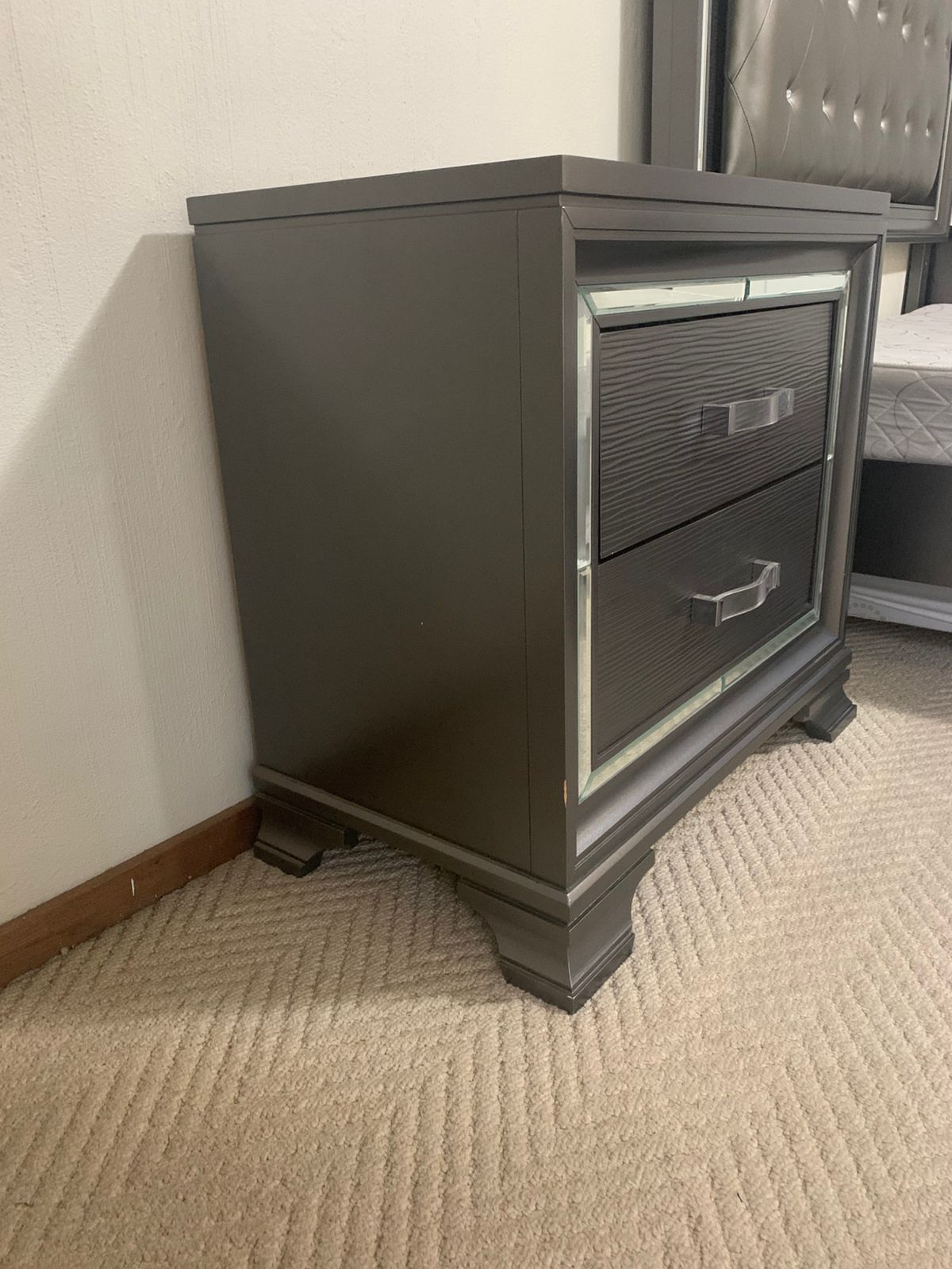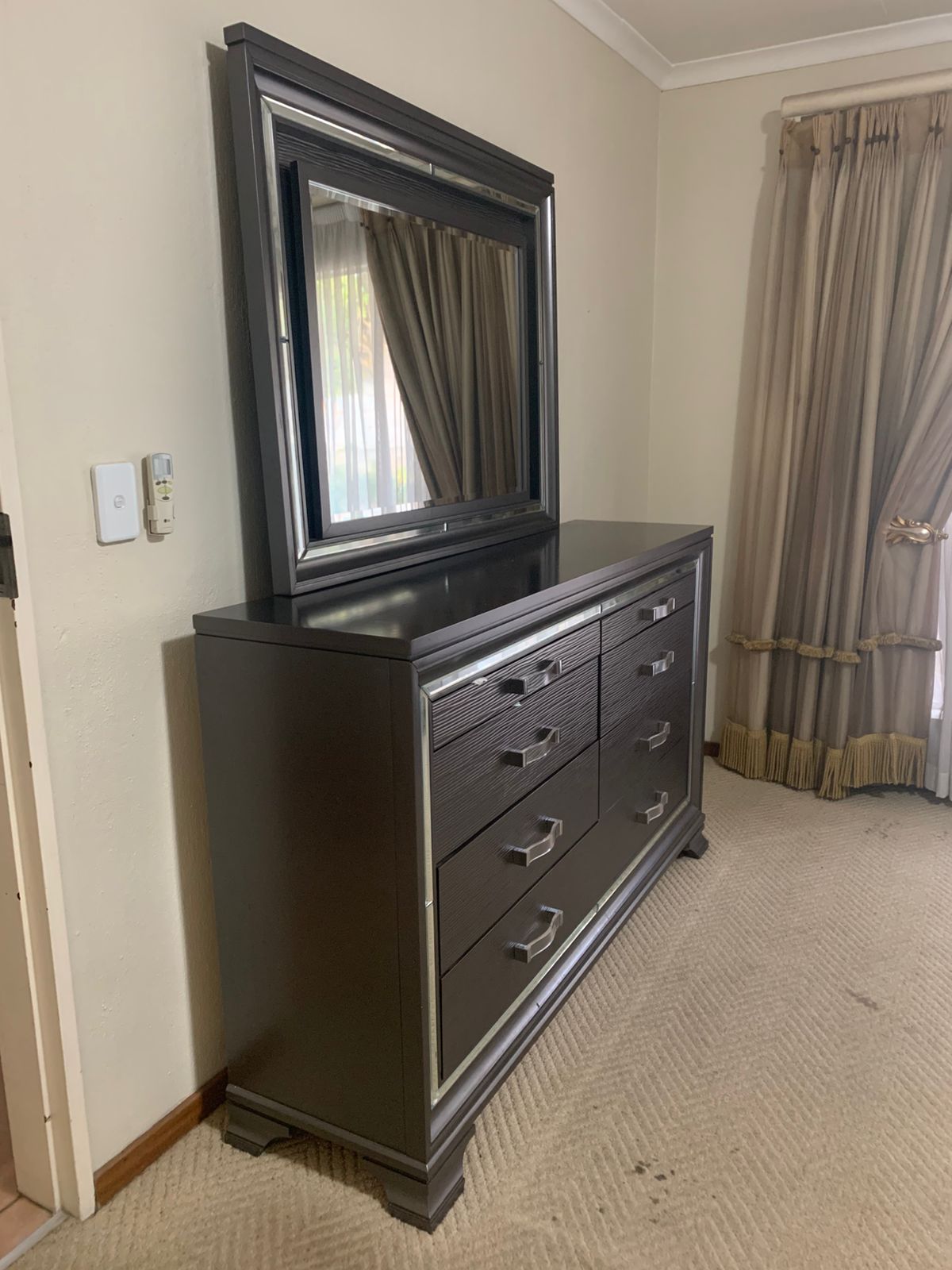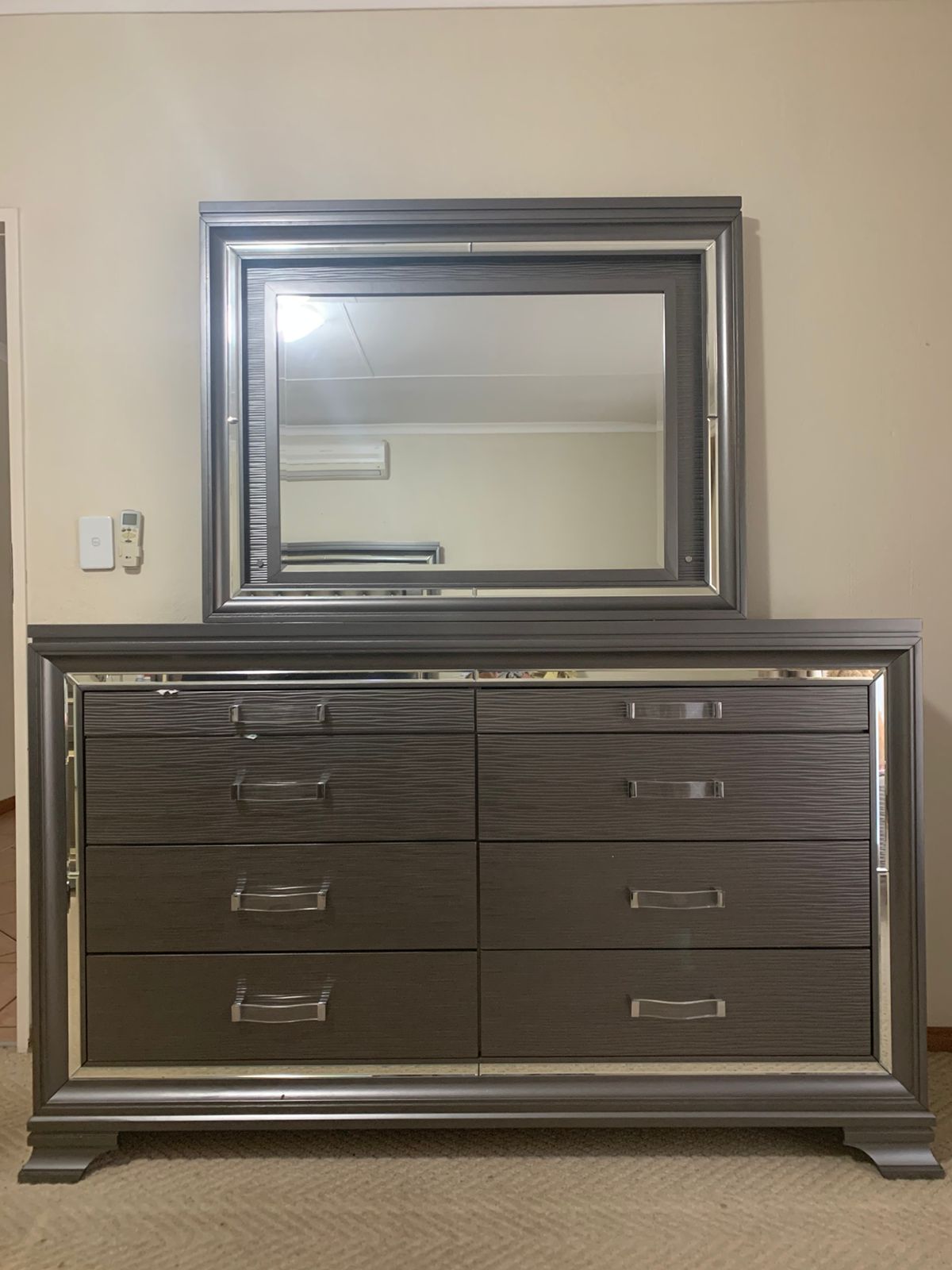 Second hand base, headboard with matching bed pedestals and matching chest of drawers along with a couch for sale.