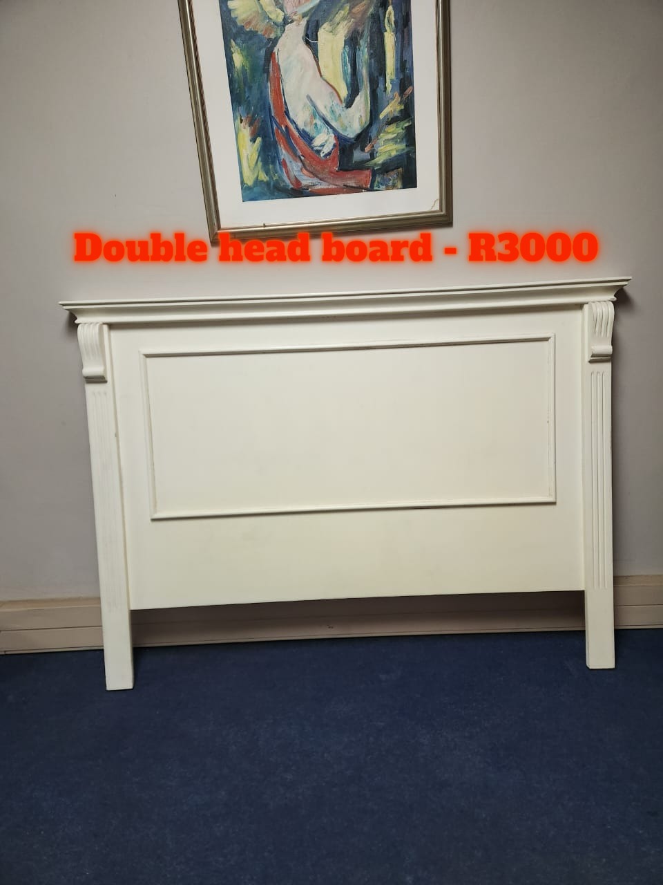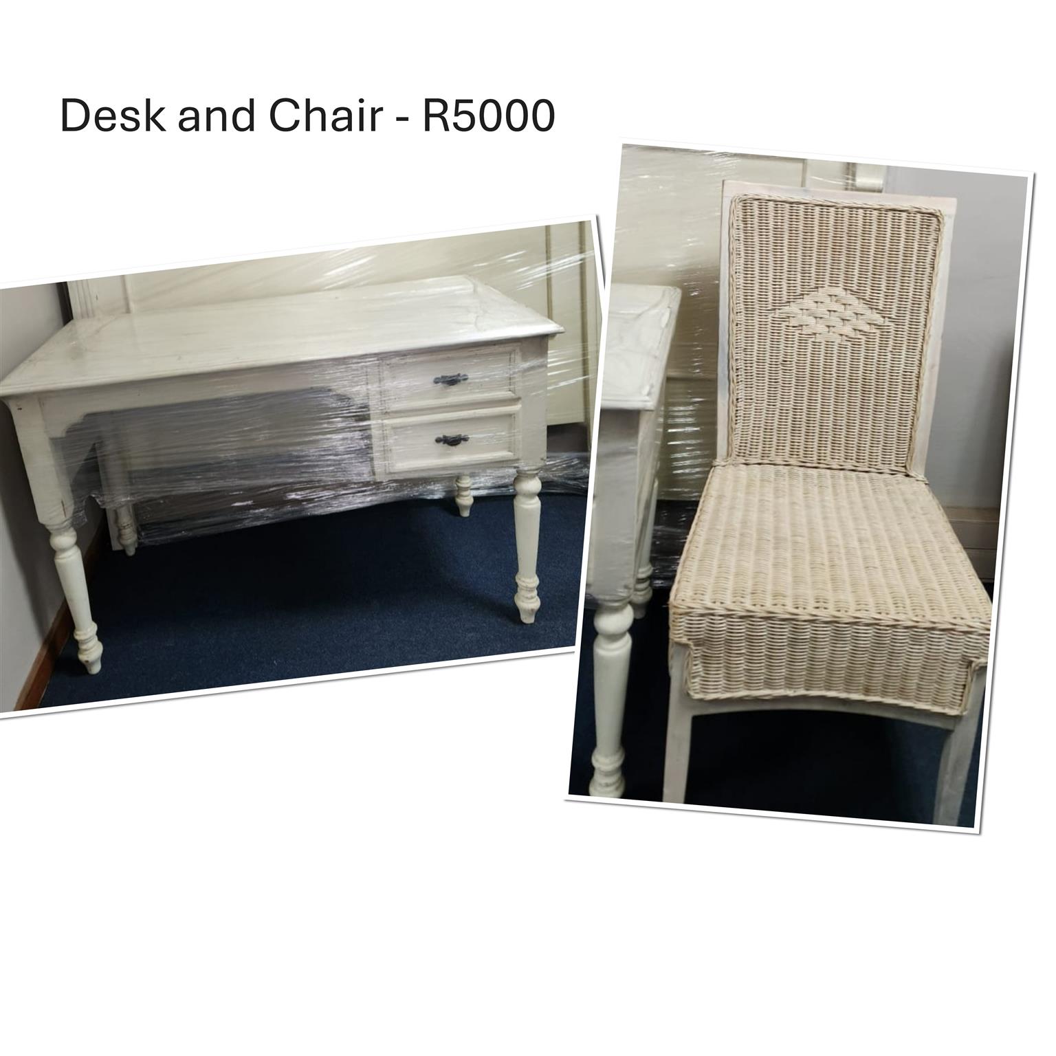 White Doube bed headboard and table with chair