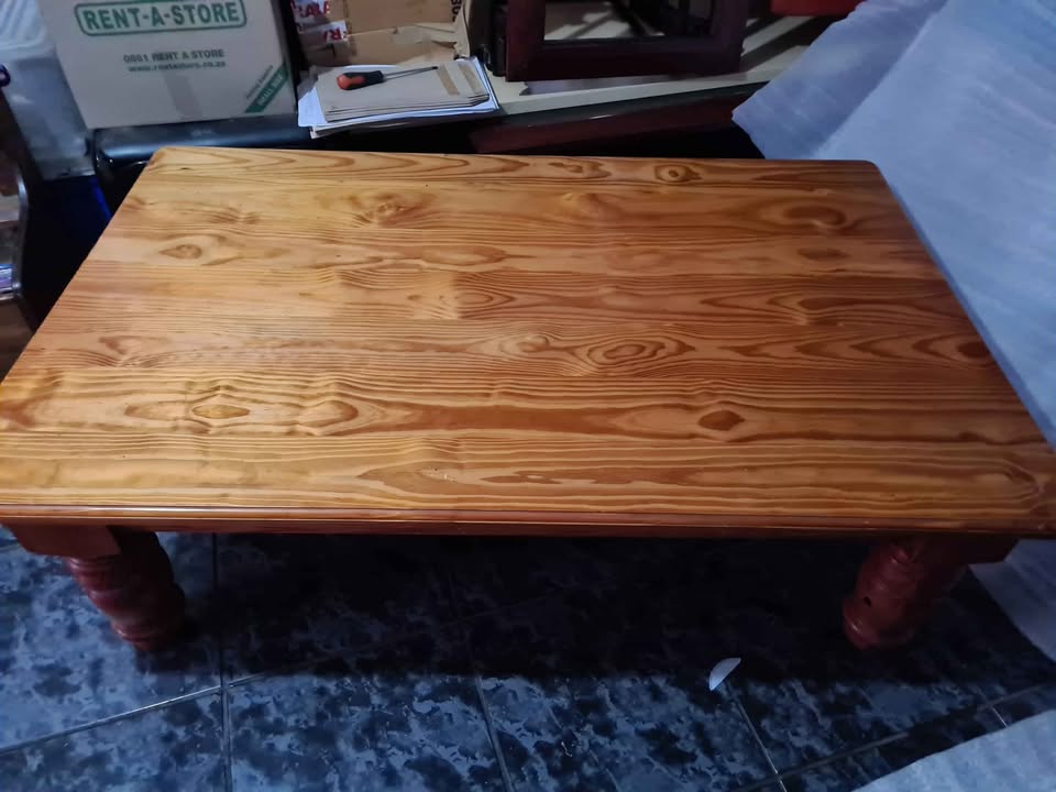 This is one beautiful Oregon coffee table. Size 150cm x 95cm. Its in an excellent condition, like new. Solid wood with large and thick legs. Huge bargain at R2200. Normal selling price is R8500