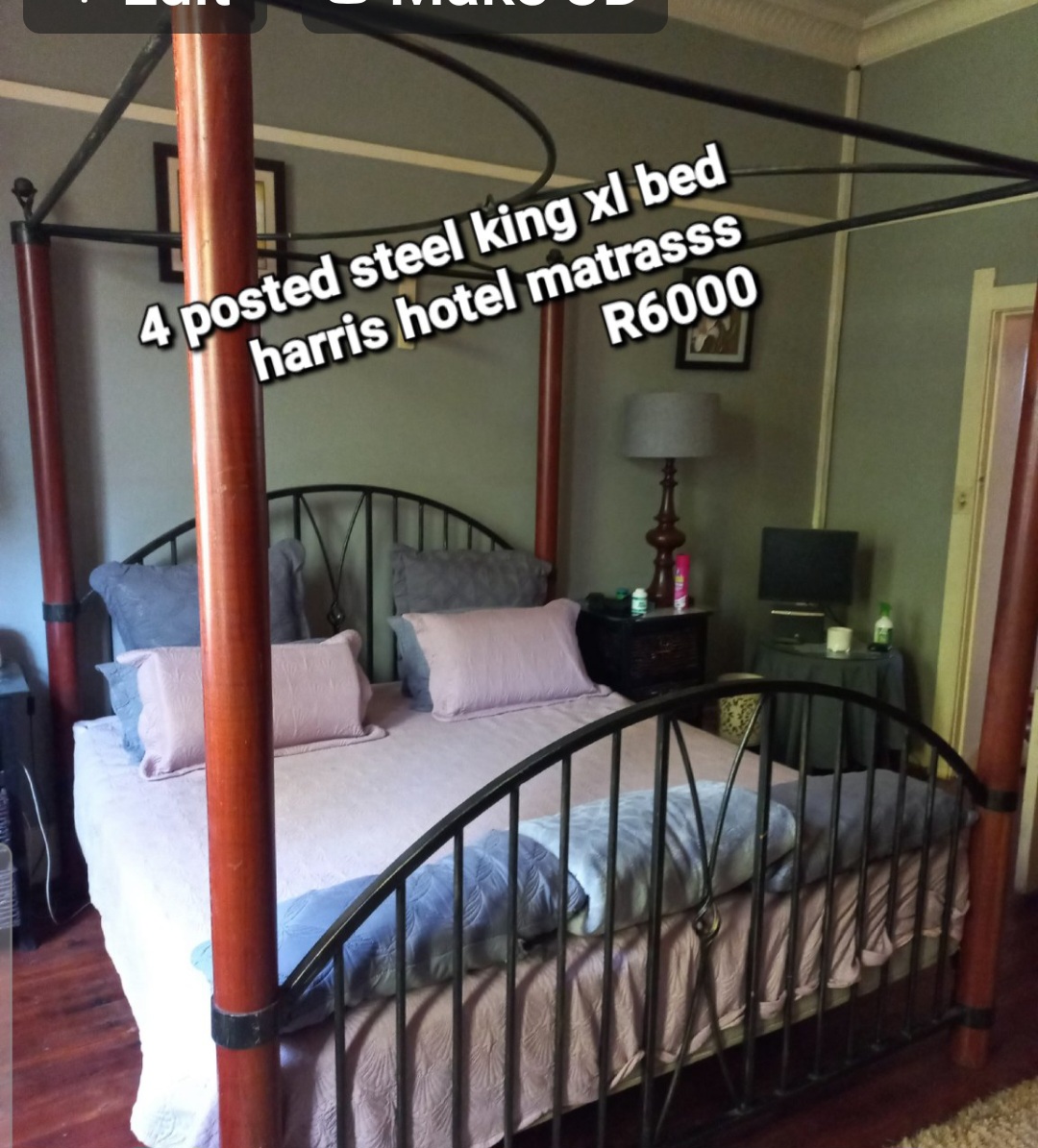 4 posted bed king xl with clean harris hotel matrass. More details: