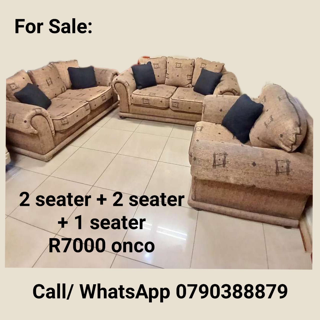 Couch set of 3 sofas. 2 seater + 2 seater + 1 seater. In good condition.