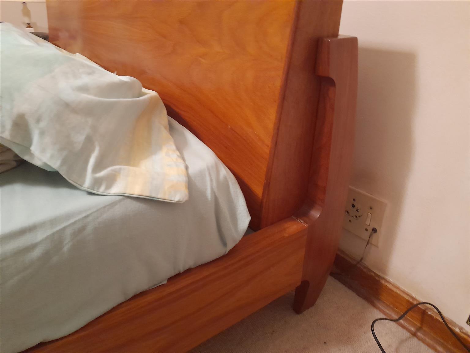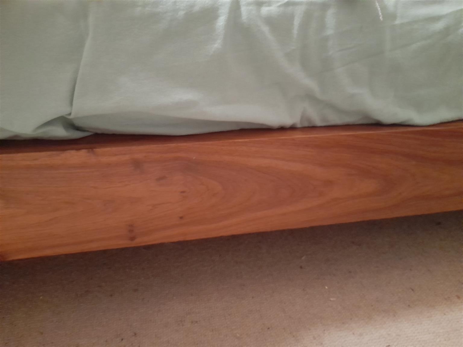Solid genuine wooden modern king-size bed and base for sale R1 500 Krugersdorp area. Good condition. Michelle 084 371 8136view more.
