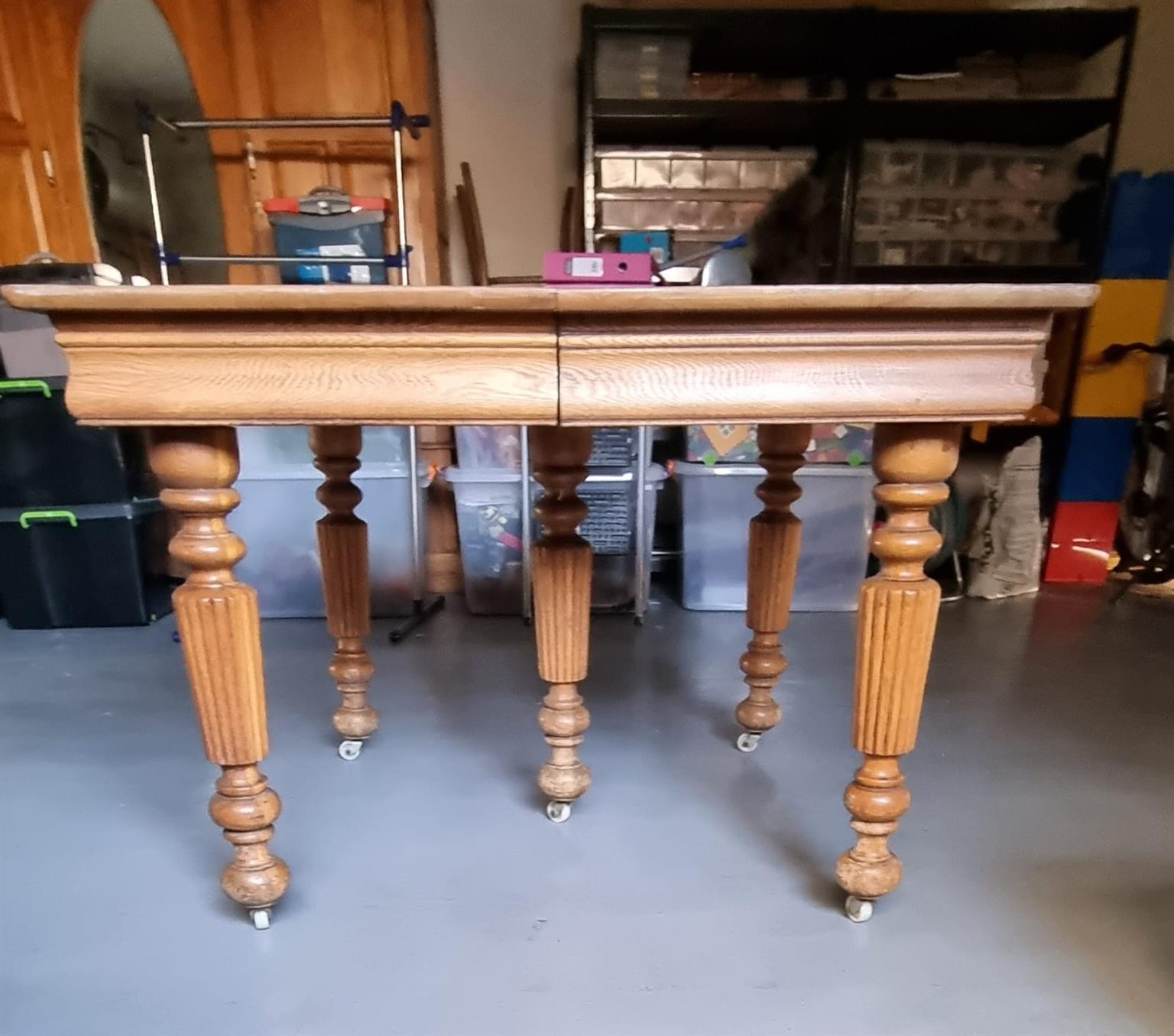Beautiful Oak 4 seater that is extendable to a 10 seater with additional board pieces included. Sold as is, negotiable