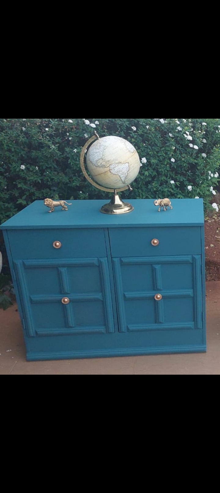 Beautiful old cupboard made into a beautiful piece for any room. Painted with a lovely colour paint to brighten up any room. ( Ornaments on top of cupboard not included)