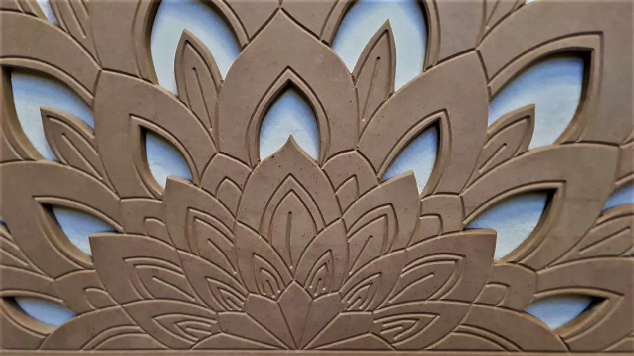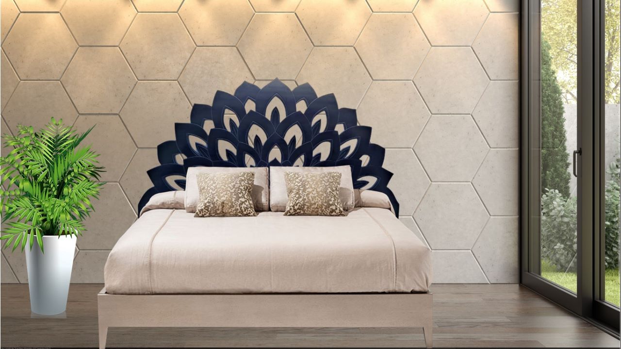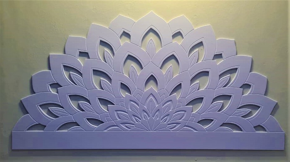 A Lotus design headboard made from White PVC OR Black PVC OR MDF Wood.