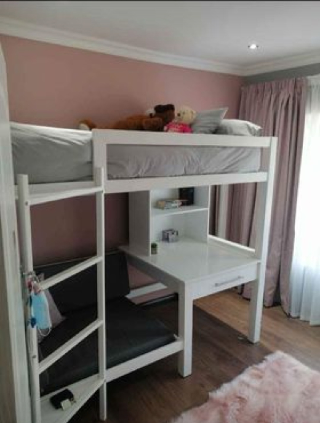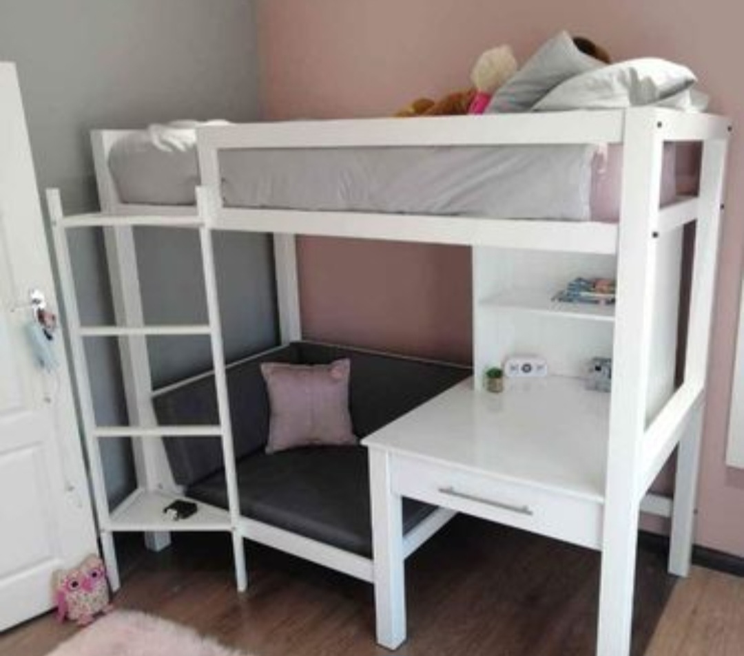Unique Bedroom Set for kids with mini lounge, study desk, bookshelf and ladder. Ideal for small rooms. One of a kind. Made from Steel.