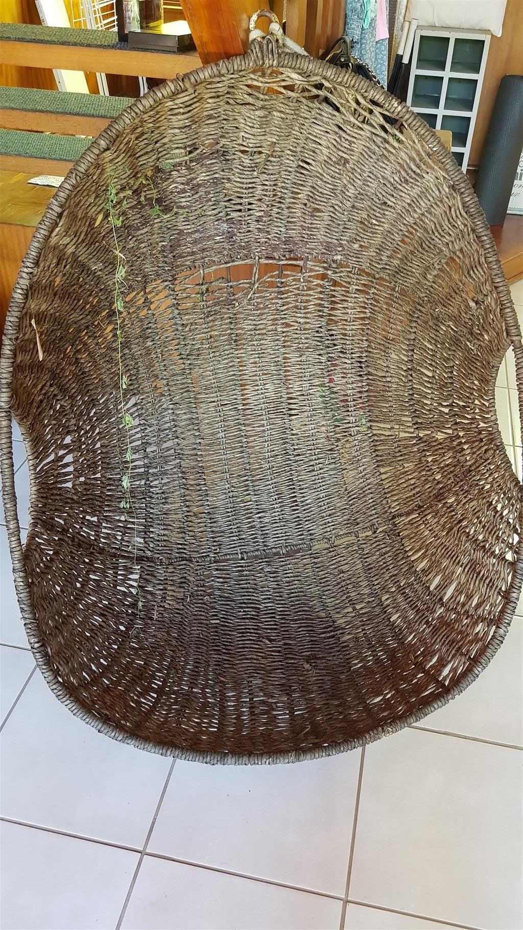 Large proper wicker hanging egg chair, no stand. Has metal ring from which to hang. No delivery, collection only. Can meet in Lanseria, Fourways or Randburg. Slightly negotiable.