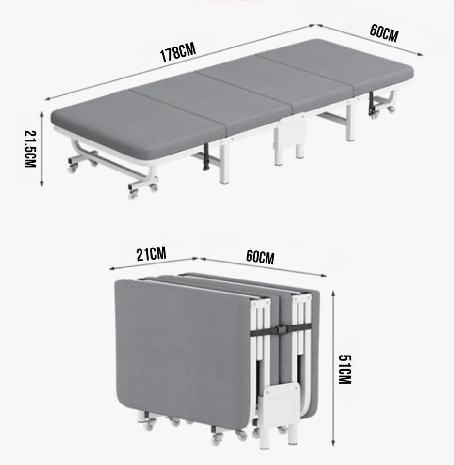 *_RECLINER FOLDING BED_* WhatsApp for the price Ample Sleeping Space For A Restful Night’s Rest - Modern & Space-Saving Recliner Foldable Bed - Equipped With A Pulley System For Compact & Convenient Sleeping Space & Easy Storage When Not In Use - Sturdy Reinforced Steel Frame & High-Density Foam Mattress - 360° Degree Wheel For Easy Transport & Move Around - Ideal Versatile Bed Serves As A Cozy Sleeping Solution For Home Use, Functional Workspace, Travelling, Camping Trips Or Hospital Care services Size: 60x190x30cm (UnFolded) 60x40x54cm (Folded)