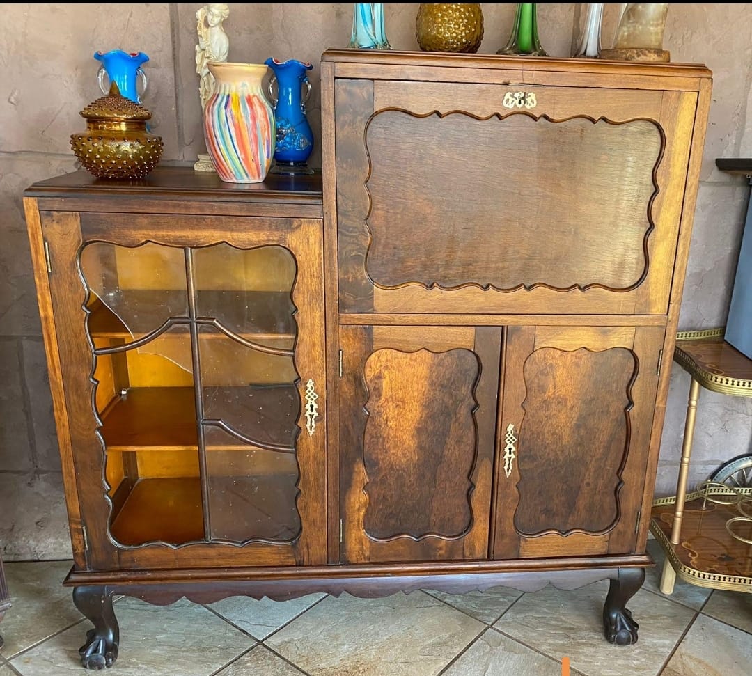 Antique Ball and Claw Drinks Cabinet, very good overall condition, one glass pane needs replacing