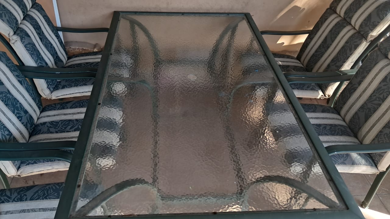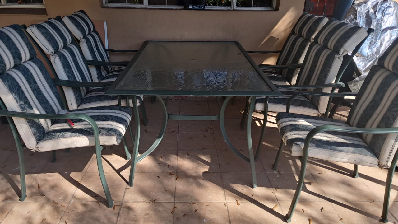 6 seater aluminium patio set with glass top