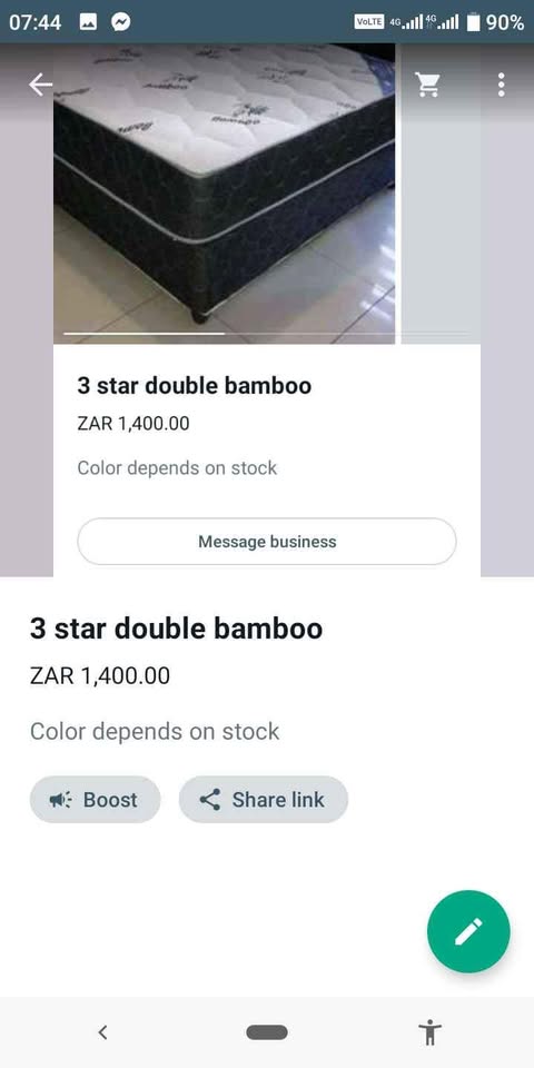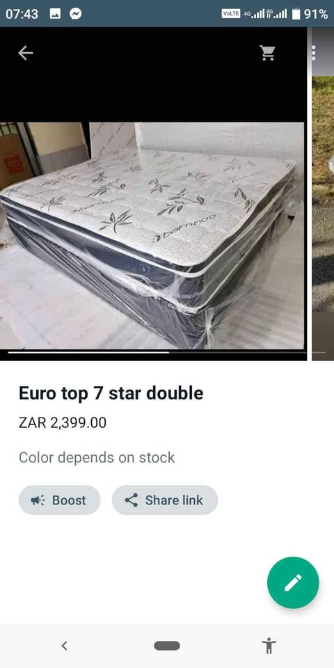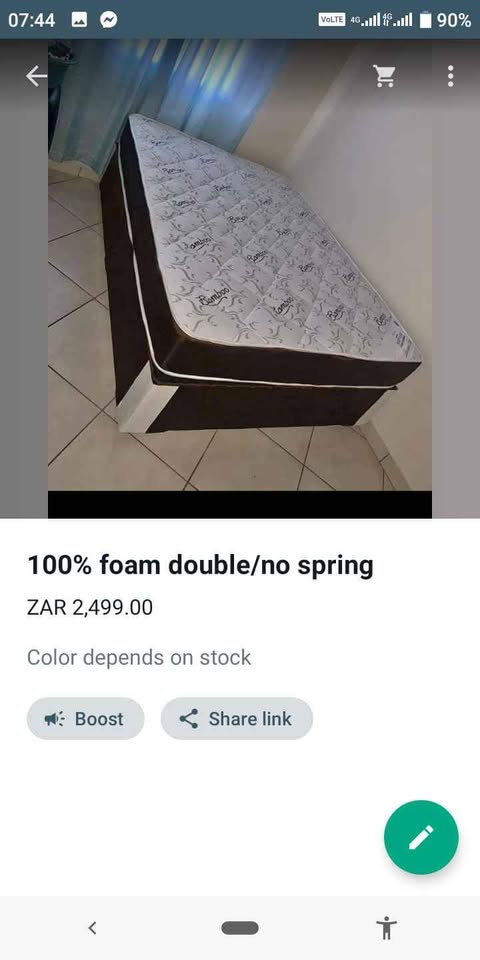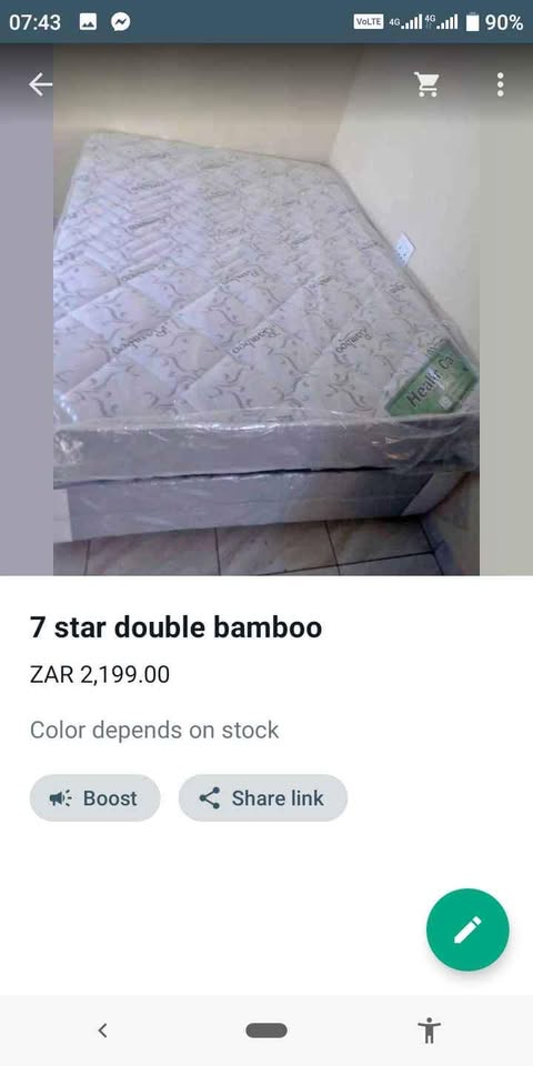 Yes it's available Starting prices 1. Single bed r1100 2. 3/4. bed r1299 3. 3 star double r1400 4. 5 star double r1600 5. 7 star double r2199 6. 10 star double r2399 For more information WhatsApp us at will send catalogue with more pictures We deliver to you with a small fee depending on your location Cash on delivery C.O.D